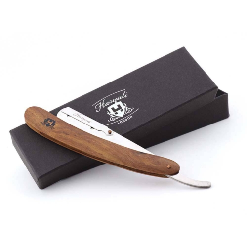Haryali London’s Cut Throat Razor in the pure wooden handle is a sustainable design in our shaving razors ranges. Exquisitely crafted with expert craftsmanship, this single blade razor is handmade with utmost care. An ergonomically designed handle in pure wood has a degree of water resistance, making it suitable for wet shaving. The precision blades are sharp, harnessed by a swing lock, and the hinge is flexible enough to open and close seamlessly.