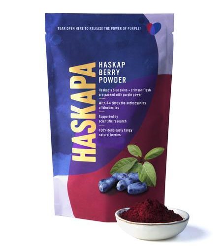 We wanted to create a product that would capture haskap’s unique nutritional content and be available to enjoy throughout the year. Haskapa Berry Powder is an antioxidant-rich powerhouse made from gently freeze-dried haskap berries to preserve their natural goodness. It contains up to three times more antioxidants than blueberries. Each 100g pouch of powder contains around 800 haskap berries (which is around 30 days worth of servings) and nothing else.