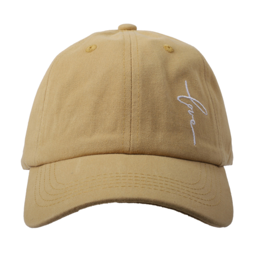 Designed in a subtle tan/yellow color, this cap strikes a perfect balance between classic aesthetics and contemporary flair. Its minimal and simple design allows it to complement any casual outfit, while the embroidered Love on the left side adds a personal and meaningful touch. The understated nature of the design makes it a perfect statement piece that radiates positivity, yet doesnít overpower your look.