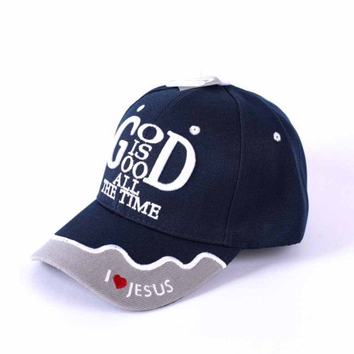 The cap features a striking navy blue and grey color combination, providing a classic yet modern look that pairs effortlessly with any outfit. The God Is Good design is prominently embroidered on the front, serving as a bold expression of faith. Additional thoughtful touches, like the I Love Jesus message on the bill and back, add meaningful details that make this cap truly unique.
