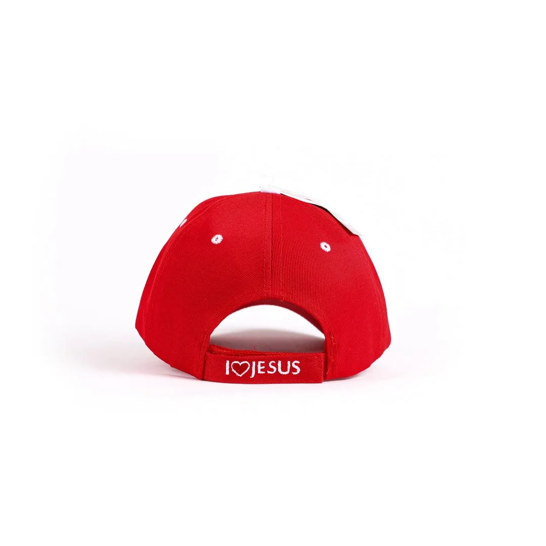 This red and black cap is adorned with a One Way – Jesus design, plus an I Love Jesus message on the bill and back. Embroidered in black, grey, and white, this cap is a perfect accessory for expressing your beliefs and adding a pop of color to any outfit.