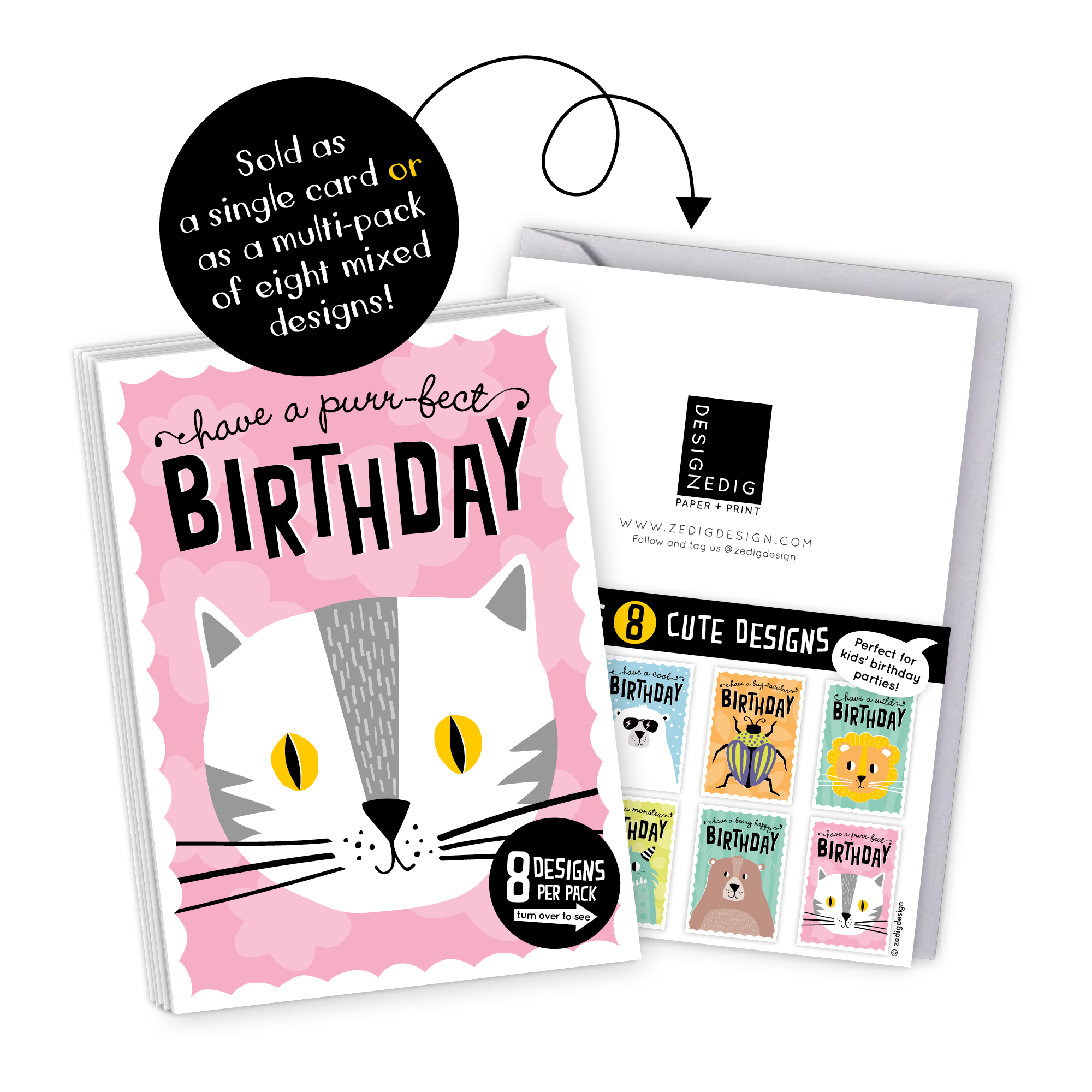 Have a purr-fect birthday! This card is part of my Paw Prints range. Sold individually OR in a multi-pack of eight mixed designs (see my other listings). Perfect for kids’ birthday parties!