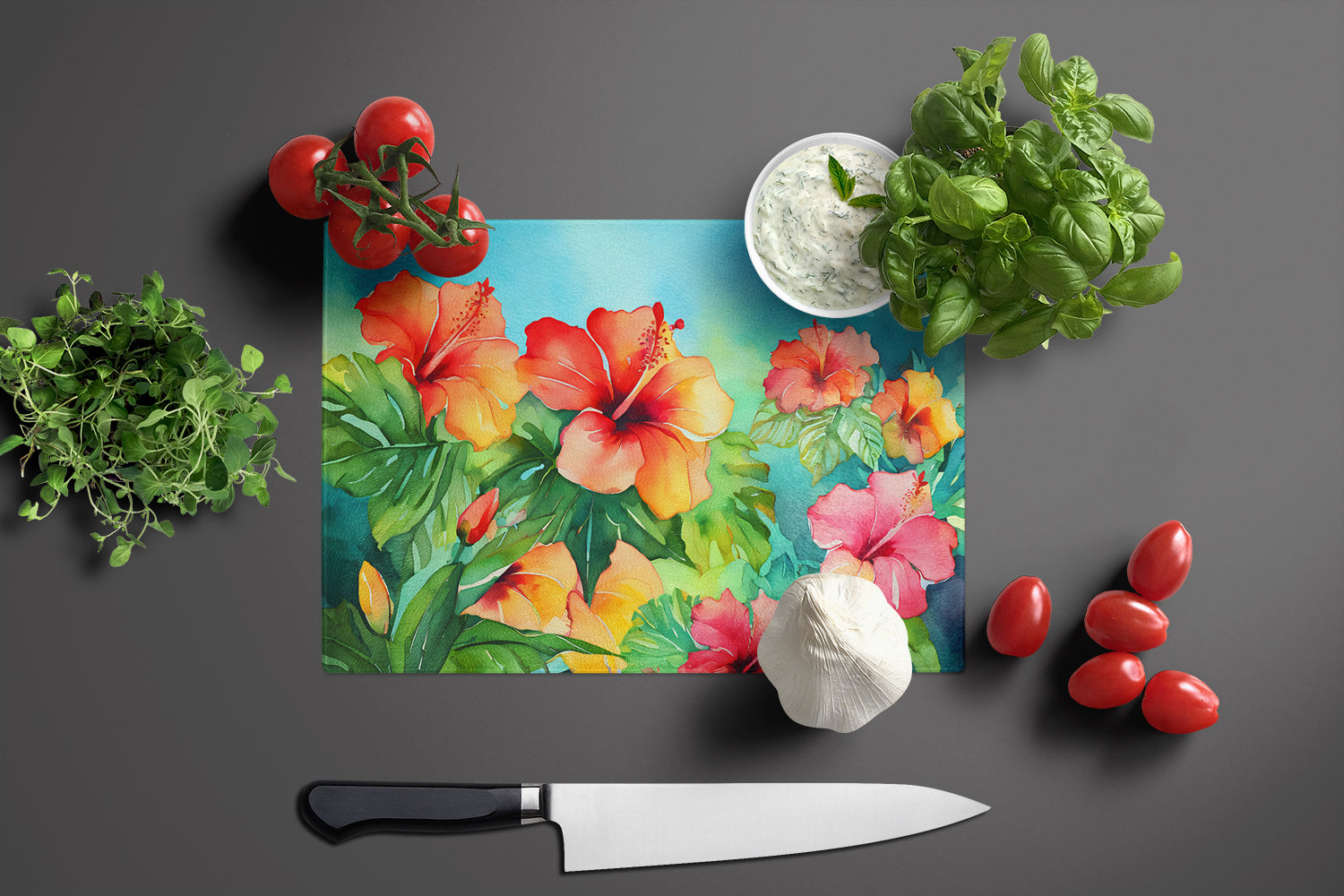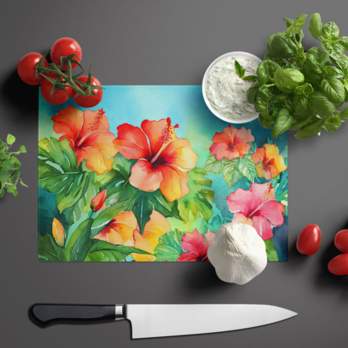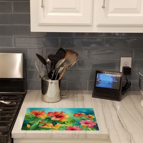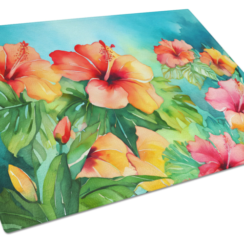 Glass Cutting Board featuring breed specific Hawaii Hawaiian Hibiscus artwork. Introduce your kitchen to the vibrant, large Decorative Glass Cutting Board from Caroline’s Treasures. Crafted from resilient tempered glass, this board is not only a utilitarian necessity but also a colorful art piece. With its generous dimensions of 15 inches in height and 12 inches in length, it offers ample space for all your cutting needs. Every piece showcases captivating artwork from distinguished artists, bringing an aesthetic edge to your kitchen. Beyond its attractive design, this cutting board ensures your countertop stays pristine and unscathed, owing to its heat-resistant properties. Engineered with user convenience in mind, it features non-skid feet for stability, and rounded corners for additional safety. Its robust construction renders it virtually unbreakable, guaranteeing longevity. The board comes with protective feet bumpers, maintaining its position during use. This product is recommended to be hand washed only. Proudly printed and assembled in the United States, this cutting board exemplifies superior craftsmanship. With Caroline’s Treasures’ Decorative Glass Cutting Board, you’re investing in a blend of functionality and artistic flair.