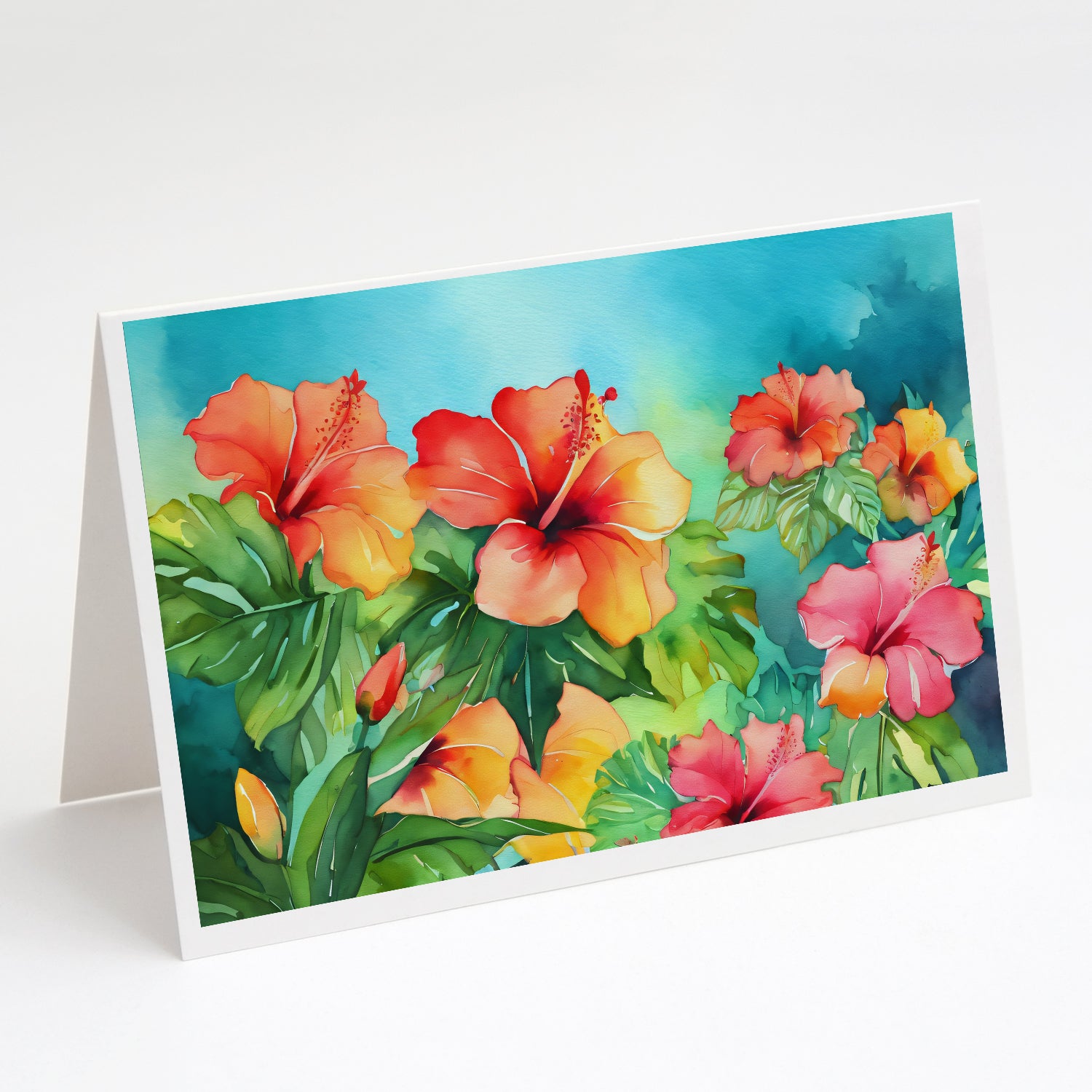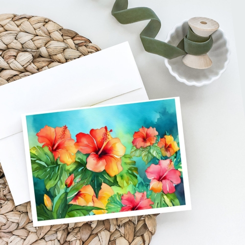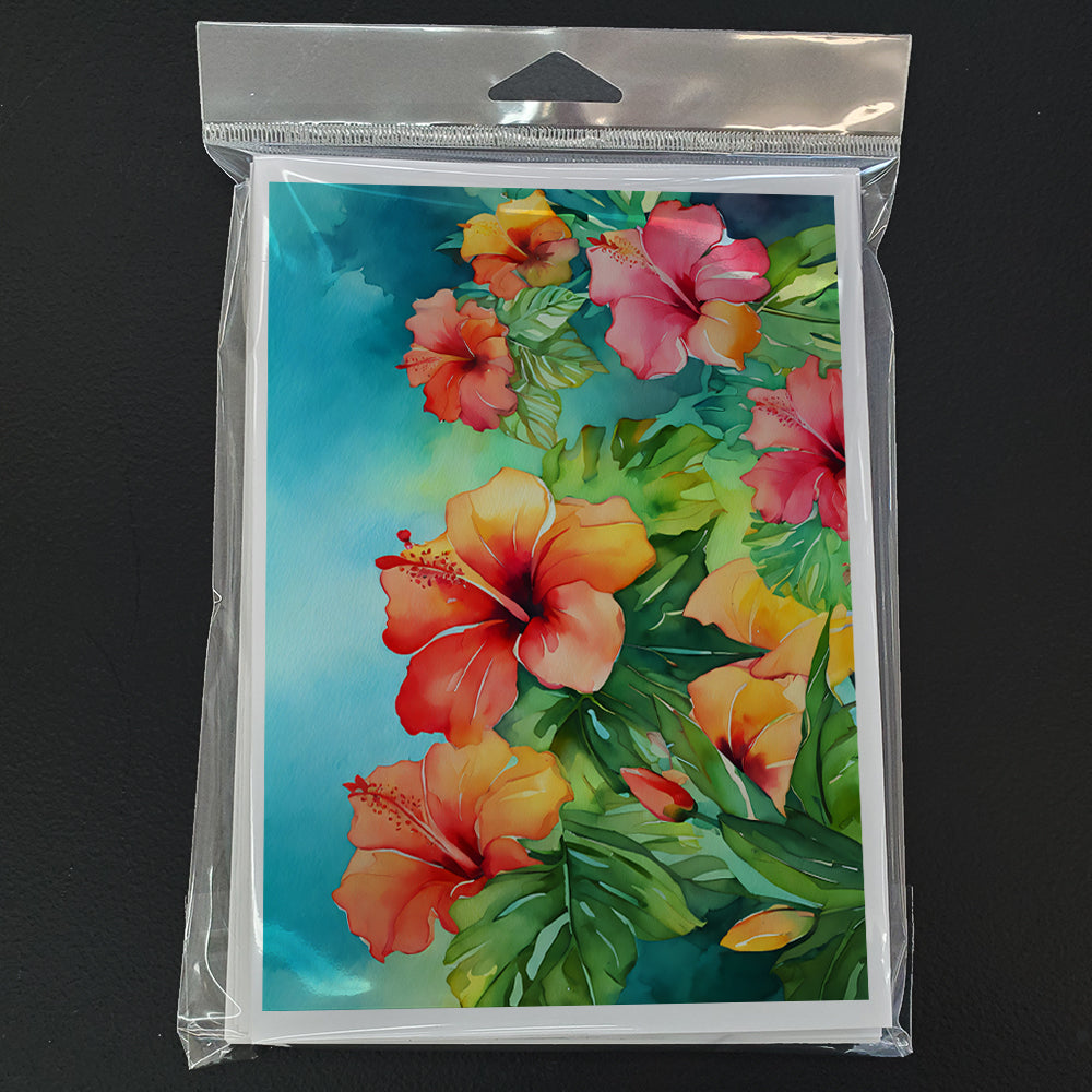 Hawaii Hawaiian Hibiscus in Watercolor Greeting Cards Pack of 8