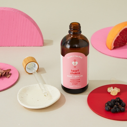 Premium stimulating body and bath oil from our Heart Chakra range formulated with Cedarwood, Frankincense, and Juniper. This blend is formulated to help invigorate you and stimulate your creativity, making it the perfect companion to your yoga or meditation practice. Our body and bath oils are packed with nutrient-rich and easily absorbed jojoba and almond oils that are highly nourishing and moisturising to the skin without leaving residue.