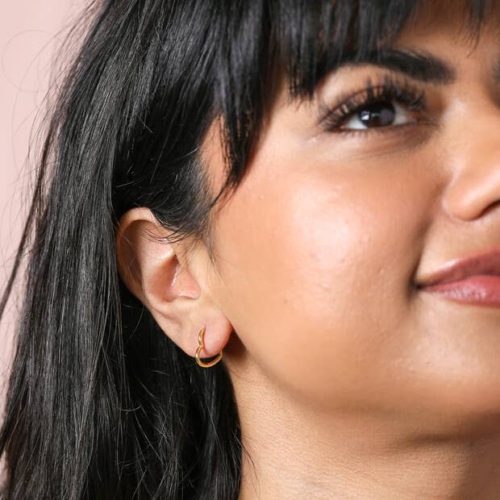 Simply open the hinge closure, slide the sterling silver posts onto your ear and click them closed for a subtle shine. Alternatively, stack these with other gold pieces to create a stylish curated ear look. Dimensionsinner width – 10mmouter width – 12mmMade from14ct gold plated brass, sterling silver posts