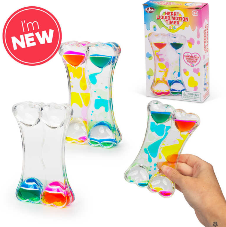 Time for heart-filled enchantment with our Heart Multi-Colored Liquid Timer! This double-sided liquid timer features four captivating colours, creating a visually mesmerizing display. Watch as the liquid cascades through the timer, turning each moment into a delightful visual treat. Bring a touch of love and colourful wonder to playtime with the Heart Multi-Colored Liquid Timer! W 9.20 x H 14.50 x D 3.60