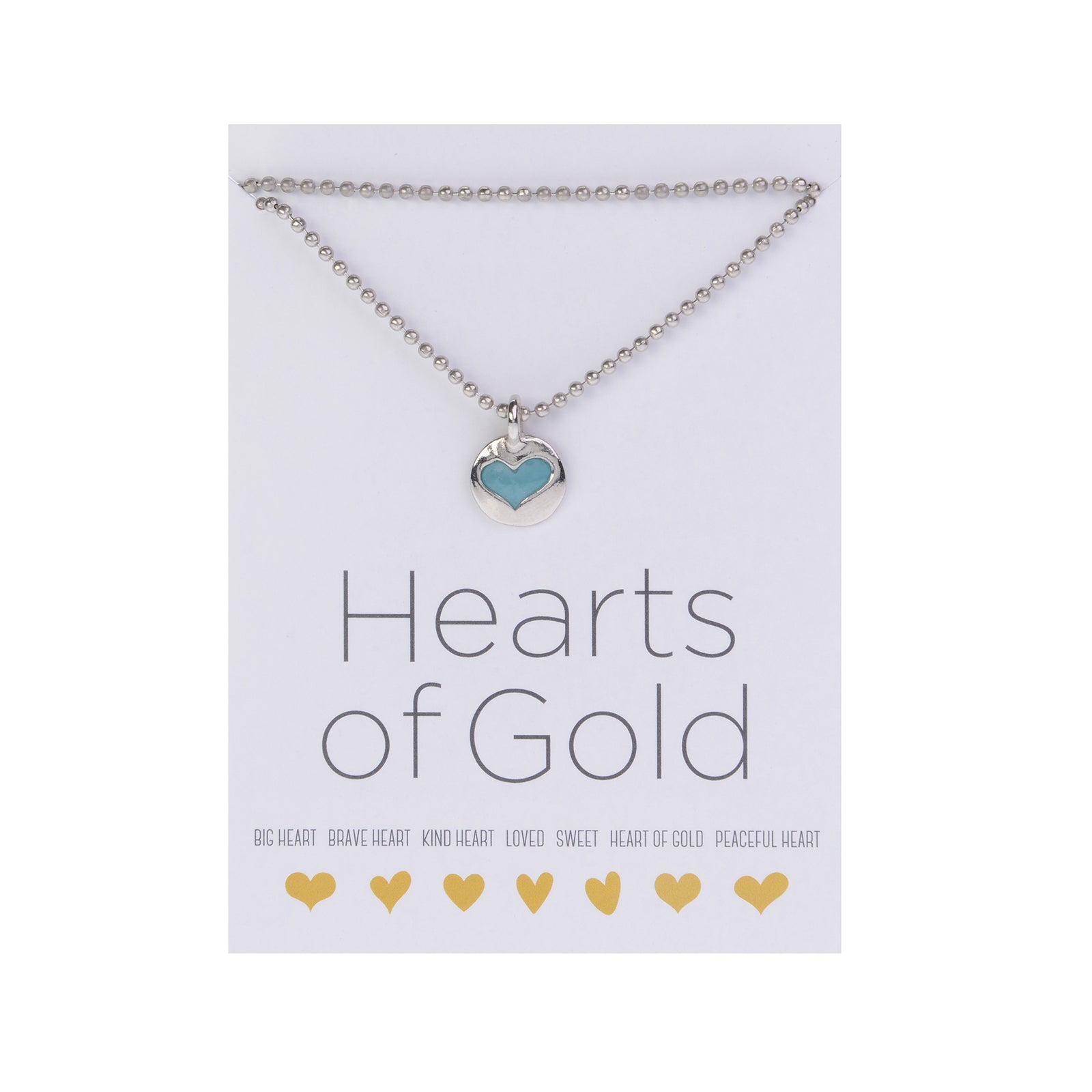 Hearts Of Gold Necklace: 18″ Silver Ball Chain with Silver Peaceful Heart Charm