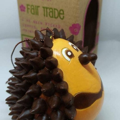 Another add to our gourd collection: a gorgeous hedgehog. Innovating with Peruvian artisans, we have developed this hedgehog, painting their body, eyes and arms and added nose and thorns, one by one in ceramic.All our gourds are biodegradable, when you consider that it’s time for its second life, please bury in the ground (including the wood Shaquira), it will help as fertilizer and nutrients for the soil.