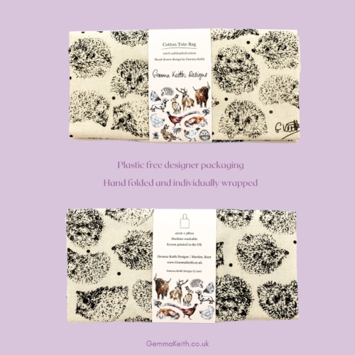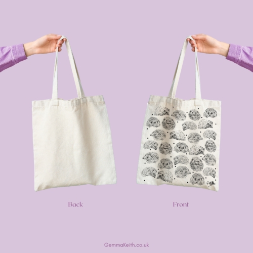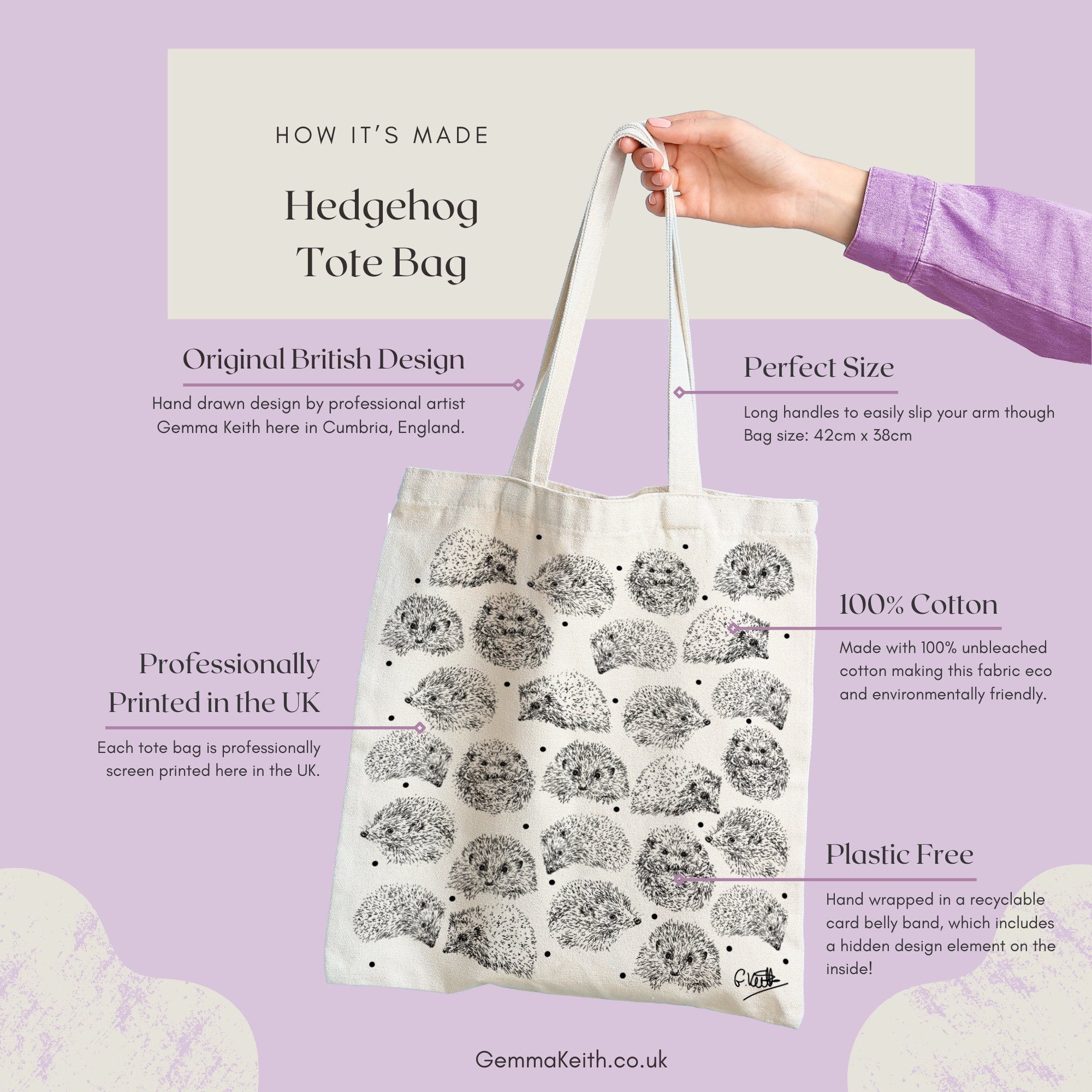 Hedgehog Screen Printed Cotton Tote Bag | Hand Drawn Design by Gemma Keith