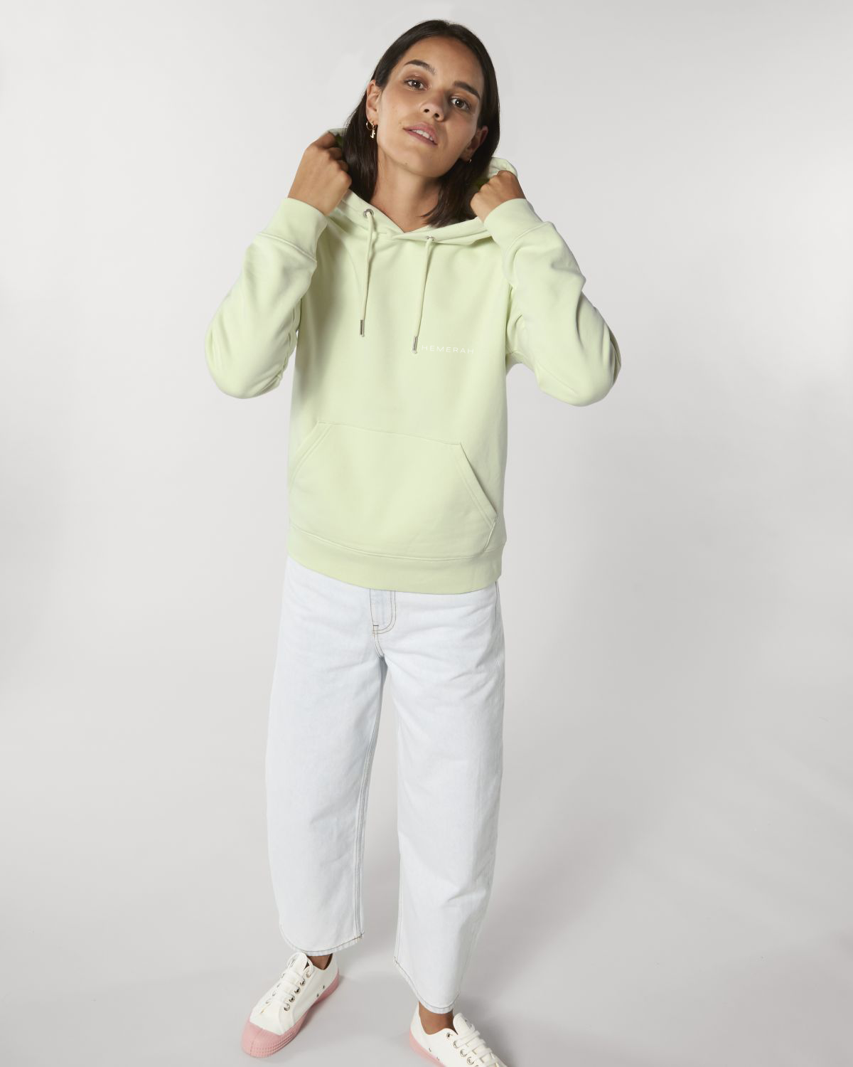 This hoodie is so comfy and practical, it’ll become your everyday favourite. It’s extra soft and has convenient front pocket. The perfect layer for those chilly days. Made from organic cotton and recycled polyester, a sustainable premium hoodie without any compromise on style.