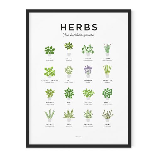 A minimalist herbs art print featuring popular culinary herbs that you can grow and cook with at home.