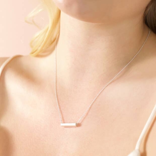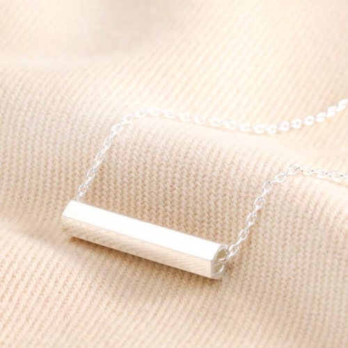 A unique bar pendant with a hexagonal shape is threaded onto a delicate silver trace chain fastening via a lobster clasp. Finished with an extender chain, the necklace can be adjusted to a variety of lengths so you can find the perfect fit.Dimensionsnecklace length – can be worn at either 41cm (16″) or 46cm (18″)pendant – width 5mm x length 20mmMade fromsterling silver plated brass