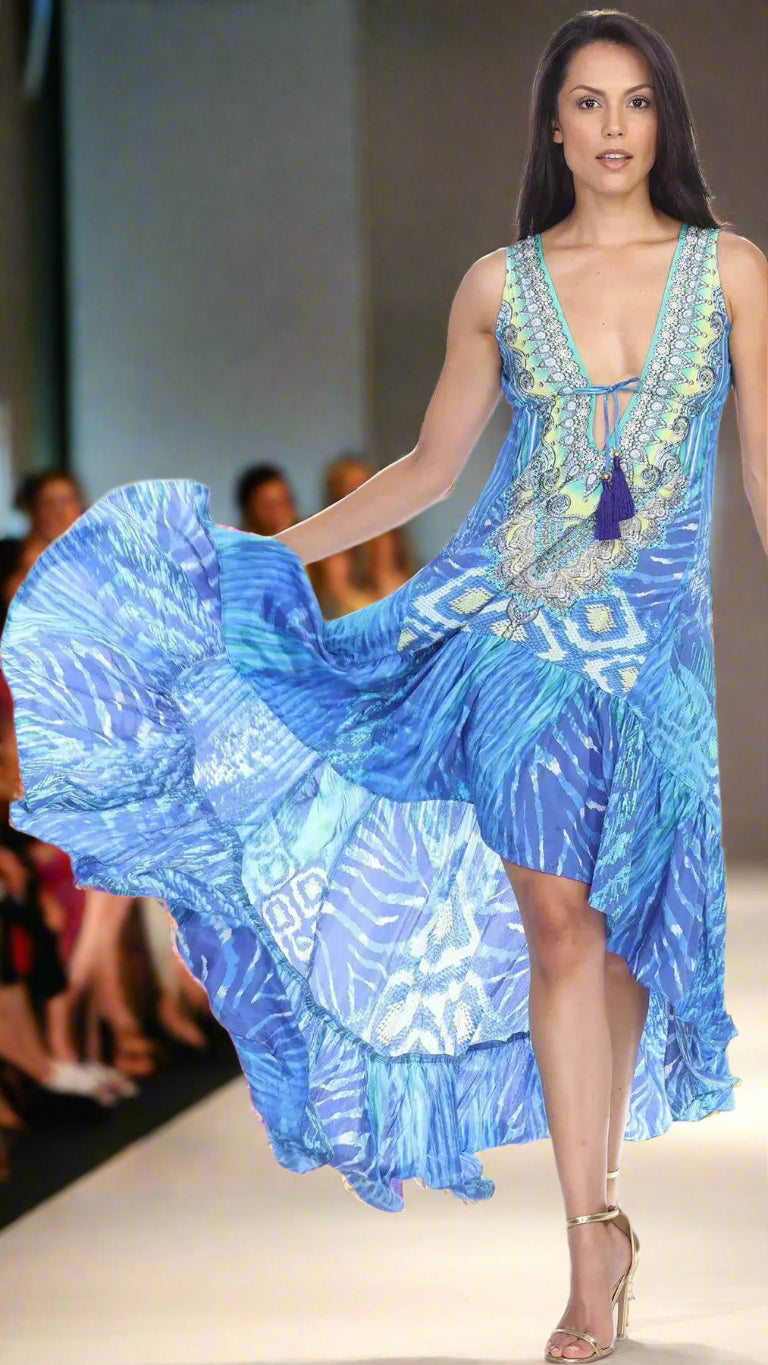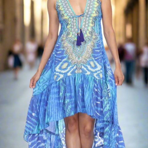 High Low Dresses perfect for your beach holiday High Low dresses perfect for your beach holiday. This is an easy breezy throw on and go style dress that is perfect for your beach holiday. The asymmetrical hemline and plunging neckline will give you a chic and sexy look. Throw it on your strapless bikini and you are all set to stroll down the beach with panache. Check out the collection at La Moda. Beach Cover-Up Dress • Beachwear & Resort Wear Cover Up • 100% Viscose Silk • Asymmetrical Hemline • Animal Print, Multi-Color • Size: S/M, L/XL• Washing Instruction: Dry Clean Pack Details:2 S/M & 2 L/XL