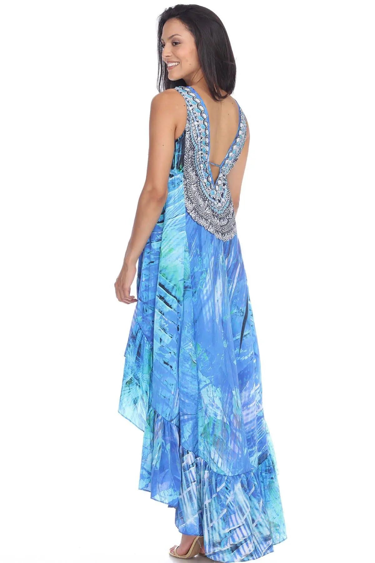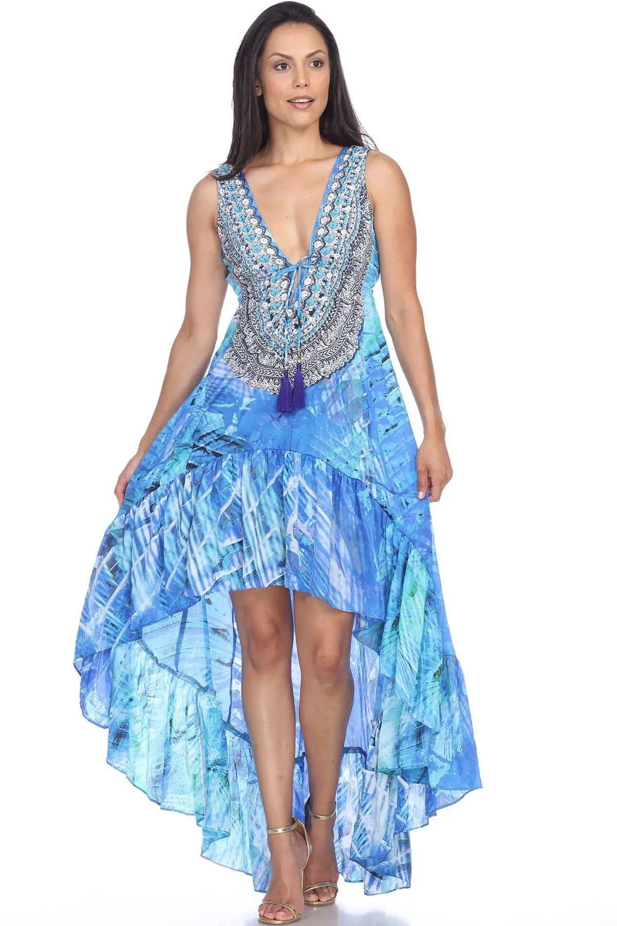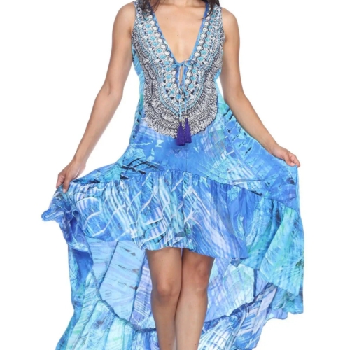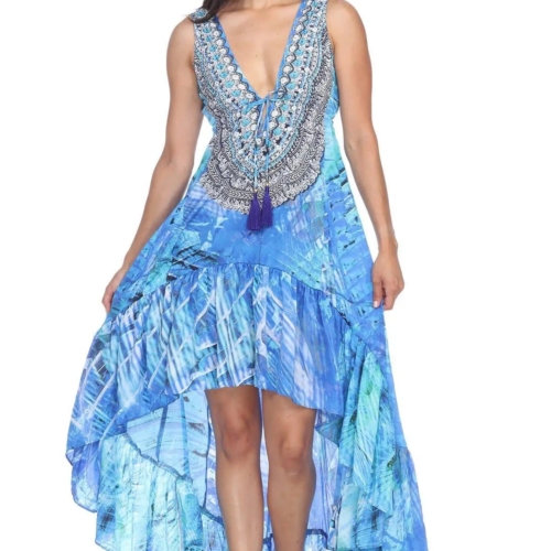 High Low Dresses This is an easy breezy throw on and go style dress that is perfect for your beach holiday. The asymmetrical hemline and plunging neckline will give you a chic and sexy look. Throw it on your strapless bikini and you are all set to stroll down the beach with panache. Check out the collection at La Moda. Beach Cover-Up Dress • Beachwear & Resort Wear Cover Up • 100% Polyester • Asymmetrical Hemline • Animal Print, Multi-Color • Size: S/M, L/XL• Washing Instruction: Hand Wash with Cold Water, Tumble Dry, Do not Iron Material:100% PolyesterPack Details:2 S/M & 2 L/XL