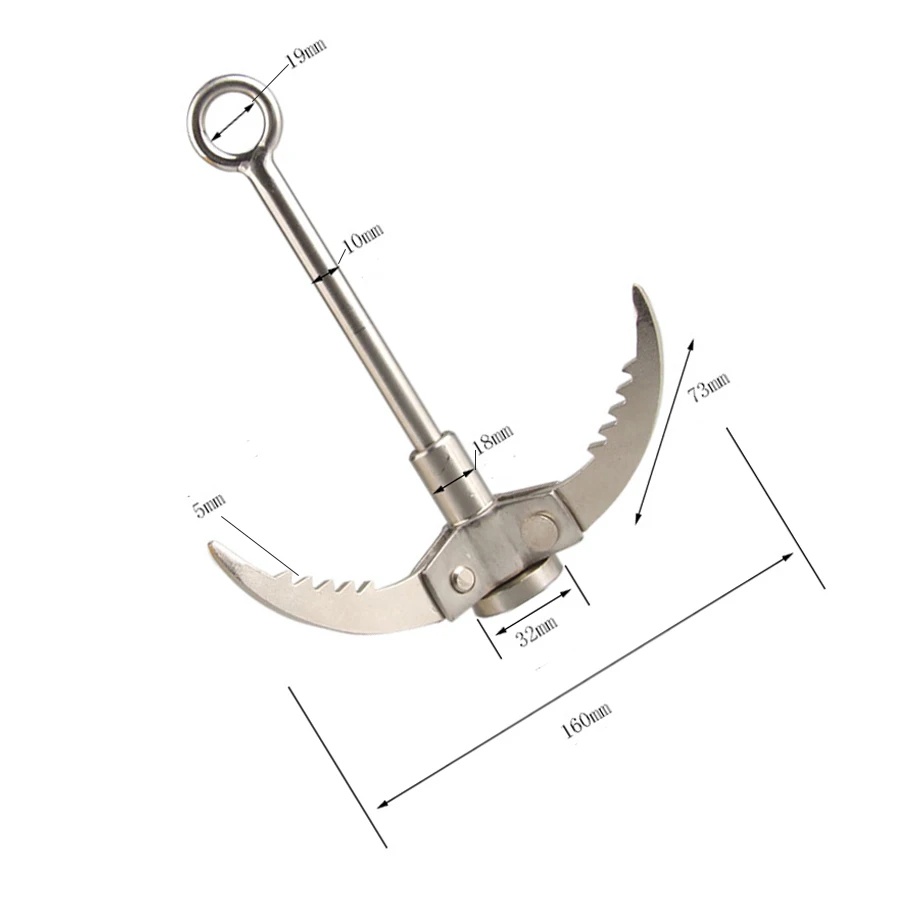 DURABLE STAINLESS STEEL Brute Magnetic grappling hook claws are made from SUS304 stainless spring steel, are extremely durable and built to last, won’t easily bend or break and are non-magnetic so it will not stick to your magnet.SECURE GRIP Brute Magnetics ensures each grappling hook claw has non-slip serrated prongs for a very strong hold on your magnet fishing objects.FOLDING JAWS Brute Magnetic grappling hook claws can be expanded and collapsed for easy transport. Easy to use, compact, convenient to carry in a pocket, and only 7.25 inches long. Expanded width is 7 inches, and collapsed width is 2.75 inches.THE PERFECT ACCESSORY The Brute Magnetics compact grappling hook is perfect to land all the unique treasure your fishing magnet can’t quite lift out of the water. Next to your magnet kit, this is the most important accessory you can own.All Brute Magnetic products are tested for quality assurance, and supported by our premium customer service team dedicated to every Amazon customer. If you are not satisfied, we offer a 30 day money back guarantee in compliance with Amazon standards. Each pack Contains 1 Item based on your check out count of selection**************************