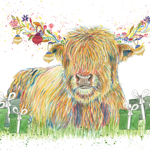 Highland Cow Christmas Eco Friendly Card Colourful Blank | Animal | Cute | Nature