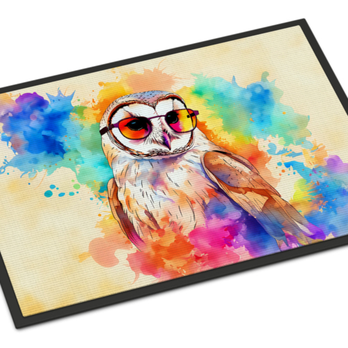 Doormat featuring breed specific Barn Owl artwork. Welcome your guests in style with our Artwork Door Mat, designed to withstand almost any weather condition. This mat, measuring approximately 24 by 36 inches, is held together by durable black binding tape. Its top layer, composed of polyester felt, is dyed with the eye-catching image you see on the mat. A few layers below provide the mat with stability, while its rubber bottom is stamped to help prevent slipping and ensures safety. Our mat works wonderfully as both an indoor or outdoor door mat. For cleaning, simply hose it off with water or use a power washer – no need for any cleaner that produces suds. Avoid scrubbing with a brush, instead, opt for the vacuum on floor setting. Designed manufactured and printed in the USA, this mat is a perfect addition to your porch, outdoor kitchen, entryway, or any indoor space. Its unique design makes it a charming decorative rug that greets your guests and adds a stylish touch to your home decor.