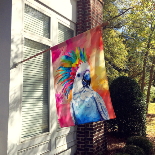 House Flag featuring breed specific Cockatoo artwork. Presenting our Heavy Duty Polyester House Size Decorative Sleeve Pole Flag, a vibrant addition to enhance the aesthetic appeal of your home. This large decorative flag, measuring approximately 28 x 40 inches, offers ample coverage and visibility. Each flag is meticulously sewn and made individually, ensuring a unique piece that may slightly vary in size. It’s a sleeve pole flag, designed to fit a standard decorative flag pole effortlessly. Please note that the flag pole and bracket are not included and should be purchased separately. What sets our flag apart is its dual-sided print. The design is mirrored on both sides of the fabric, allowing for uniform visibility regardless of the angle. Printed in full color, our flag showcases vibrant hues that truly stand out. To ensure lasting vibrancy and durability, the dyes are heat-set into the fabric. This ensures your flag remains bright and captivating through various weather conditions. Elevate the look of your home with our Heavy Duty Polyester House Size Decorative Sleeve Pole Flag!