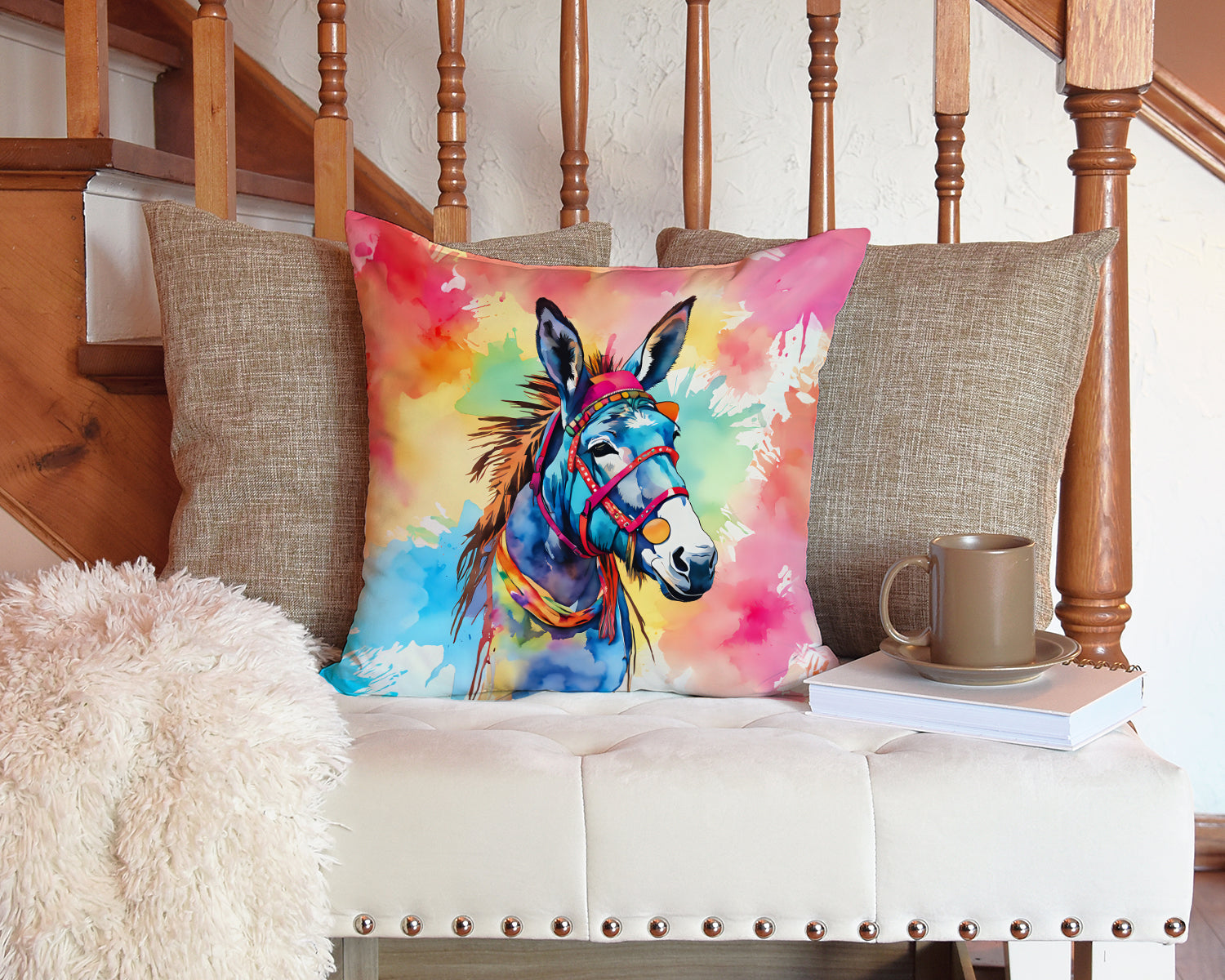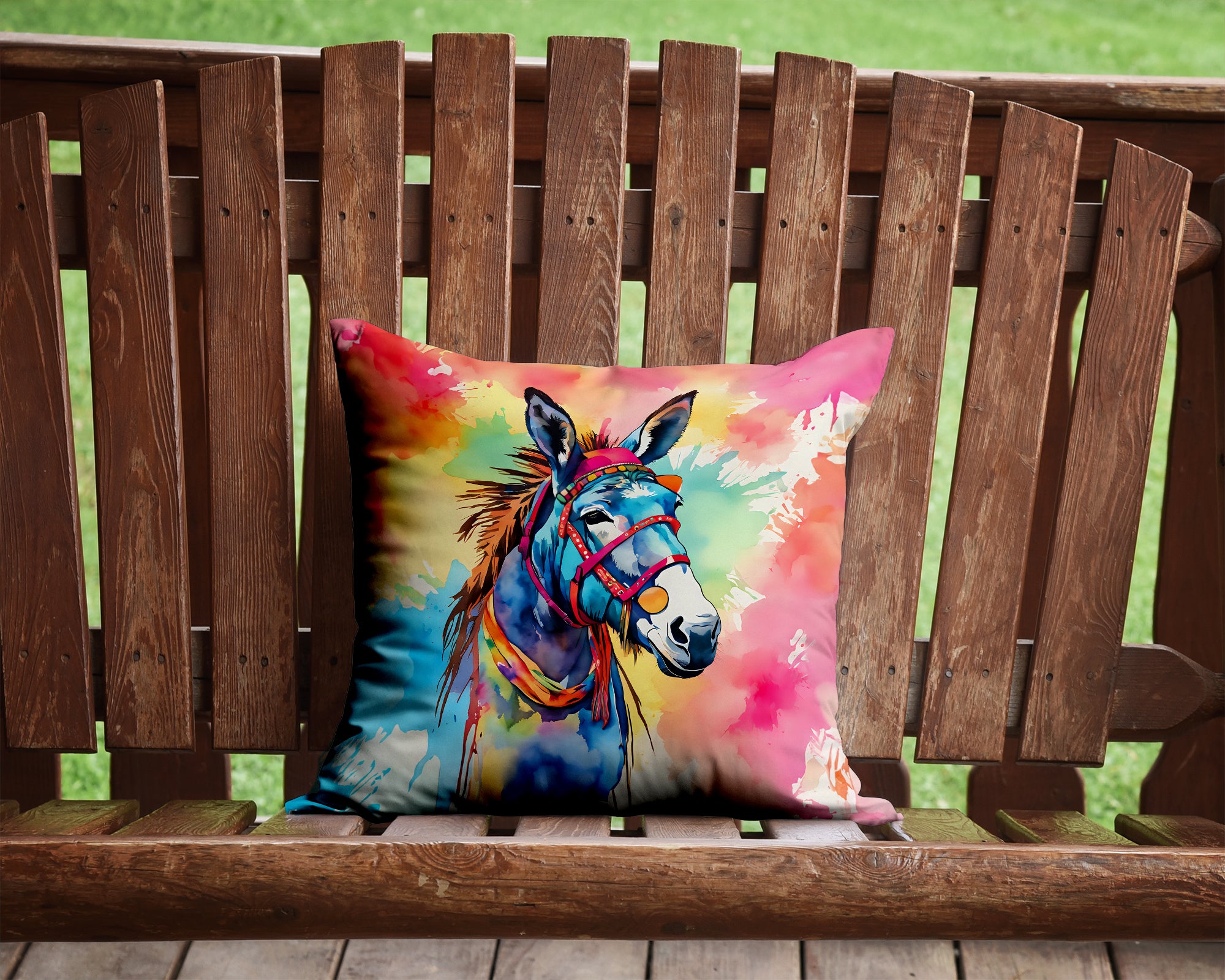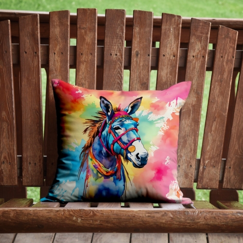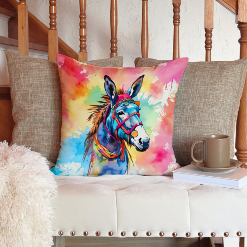 Throw Pillow featuring breed specific Donkey artwork. Add a touch of vibrancy and comfort to your outdoor seating with Caroline’s Treasures Fabric Decorative Pillow. Measuring approximately 14 inches by 14 inches, this outdoor pillow is crafted to elevate the appeal of your patio furniture, infusing it with vivid color and artistic flair. The pillow includes a 100% Polyester Fabric sham filled with a quality pillow form to provide superior comfort. Innovatively made from our brand new material, specifically woven for its water resistance, this pillow is designed for durability. The soft canvas fabric offers versatility in use, fit for your indoor couch or your outdoor patio, porch, or veranda. The fabric is dyed with colorfast dyes built for resilience against weather conditions, ensuring the pillow retains its beauty over time. Constructed by sewing three fabric pieces to create a sham, the polyester insert is then nestled inside to form the pillow, resulting in an overstuffed pillow that maintains its shape. Both the sham and the pillow insert are proudly made in the United States. As the pillows are handcrafted, there may be minor variations in size, further enhancing their unique charm. Experience comfort in style with Caroline’s Treasures Fabric Decorative Pillow.