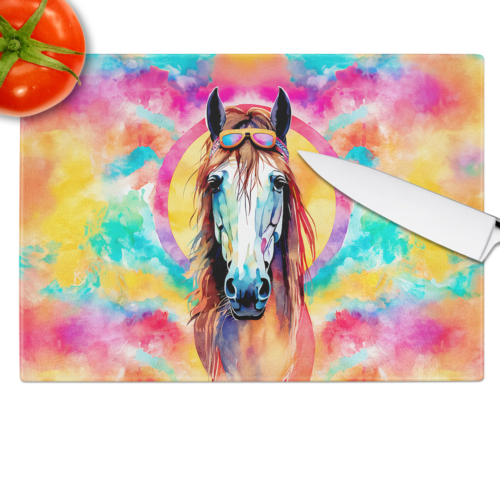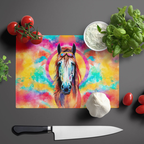 Glass Cutting Board featuring breed specific Horse artwork. Introduce your kitchen to the vibrant, large Decorative Glass Cutting Board from Caroline’s Treasures. Crafted from resilient tempered glass, this board is not only a utilitarian necessity but also a colorful art piece. With its generous dimensions of 15 inches in height and 12 inches in length, it offers ample space for all your cutting needs. Every piece showcases captivating artwork from distinguished artists, bringing an aesthetic edge to your kitchen. Beyond its attractive design, this cutting board ensures your countertop stays pristine and unscathed, owing to its heat-resistant properties. Engineered with user convenience in mind, it features non-skid feet for stability, and rounded corners for additional safety. Its robust construction renders it virtually unbreakable, guaranteeing longevity. The board comes with protective feet bumpers, maintaining its position during use. This product is recommended to be hand washed only. Proudly printed and assembled in the United States, this cutting board exemplifies superior craftsmanship. With Caroline’s Treasures’ Decorative Glass Cutting Board, you’re investing in a blend of functionality and artistic flair.