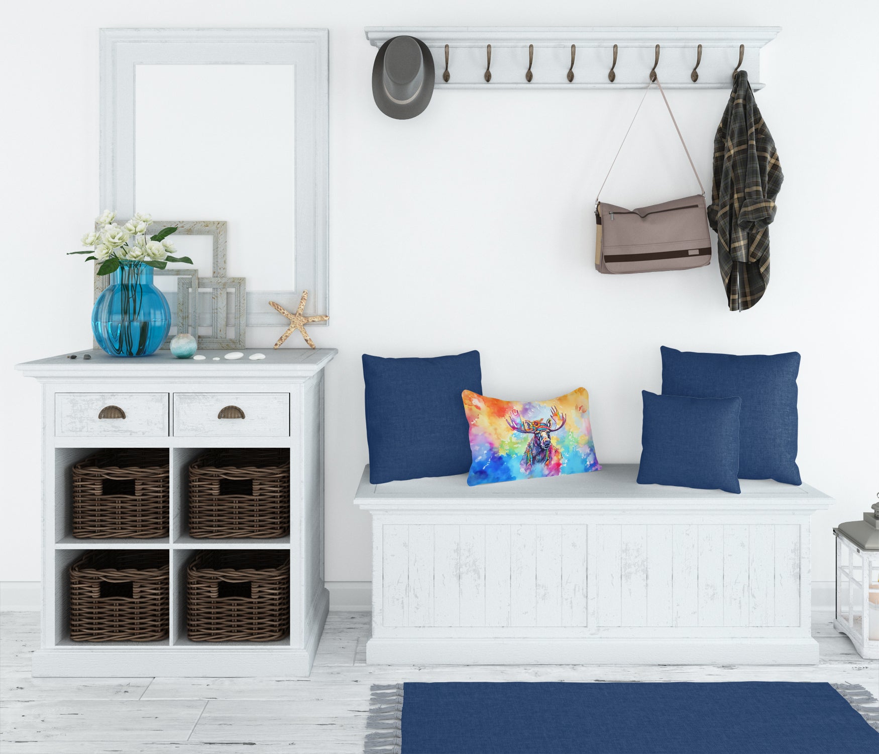 Throw Pillow featuring breed specific Moose artwork. Embrace the fusion of comfort and style with Caroline’s Treasures Fabric Decorative Pillow. This 12×16 inch outdoor pillow is designed to complement your patio furniture, adding a splash of color and artistry to your outdoor setting. Constructed with a 100% Polyester Fabric pillow sham filled with a plush pillow form, this cushion is as comfortable as it is durable. Our outdoor pillow utilizes a novel fabric, meticulously woven for enhanced water resistance. This soft canvas material is equally suited for your indoor couch as well as outdoor settings such as the patio, porch, or veranda. To ensure enduring vibrance, we employ colorfast dyes resistant to fading even when subjected to weather elements. The making of this pillow involves the delicate sewing together of three fabric pieces to create a sham, into which a polyester insert is carefully placed. The result is an overstuffed pillow that tenaciously holds its shape. With both the sham and the pillow insert crafted in the United States, these handmade pillows are a testament to superior local craftsmanship. Note that as these pillows are handmade, sizes may slightly vary, enhancing their unique appeal. Enjoy comfort in style with Caroline’s Treasures Fabric Decorative Pillow.
