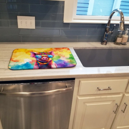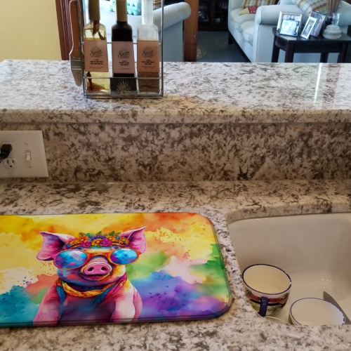 Dish Drying Mat featuring breed specific Pig artwork. Say goodbye to messy countertops and soggy dish towels with our innovative dish drying mat. Our high-quality dish drying pad is designed to keep your countertops dry while offering a stylish and efficient solution. Whether you’re air drying dishes, glasses, stemware, silverware, pots, pans, bottles, or even fruits and vegetables, our dish mat is the perfect choice. The 14 inches x 22 inches size fits most counters and dish drying racks, and the non-slip design ensures stability. Made with water-absorbent polyester and a polyurethane foam insert, our dish drying mat is not only functional but also durable. It’s machine washable and printed in the USA for long-lasting use. The beautiful artwork adds flair to your kitchen decor, making it a perfect housewarming gift or present for any occasion. Upgrade your kitchen experience with our absorbent and versatile dish drying mat.
