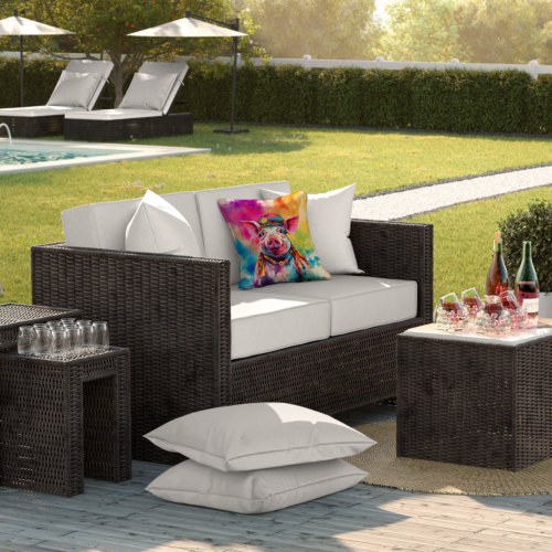Throw Pillow featuring breed specific Pig artwork. Revitalize your outdoor or indoor living space with Caroline’s Treasures 18×18 Fabric Decorative Pillow. With a generously sized dimension of approximately 18 inches by 18 inches, this pillow makes a comfortable and aesthetic addition to any seating area. Made from a unique, water-resistant material developed by Caroline’s Treasures, the pillow sham is 100% polyester fabric that’s durable and ready to weather any condition. Its vibrant, full-color artwork will not fade over time as it is dyed with color-fast dyes. Whether you place it on your patio furniture, porch, veranda, or indoor couch, its soft canvas fabric ensures a cozy experience. The pillow is handcrafted in the United States, featuring a sham created from three pieces of fabric and a polyester insert for enduring shape and overstuffed comfort. Despite being robustly built to endure the outdoors, it is as soft and snug as your favorite indoor cushions. Please note, as all our pillows are handmade, sizes may vary slightly, adding to the charm of this unique decorative item.