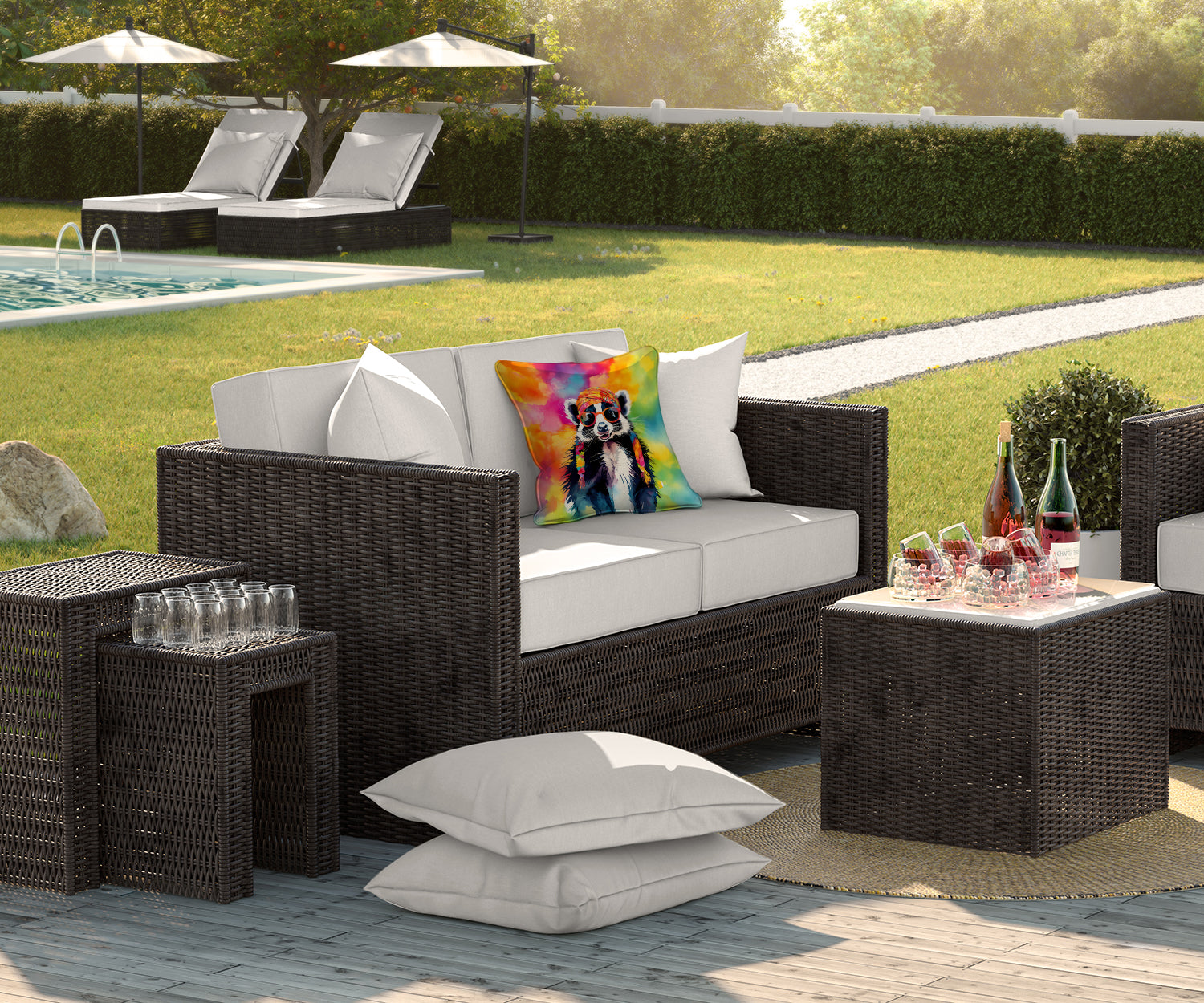 Throw Pillow featuring breed specific Skunk artwork. Revitalize your outdoor or indoor living space with Caroline’s Treasures 18×18 Fabric Decorative Pillow. With a generously sized dimension of approximately 18 inches by 18 inches, this pillow makes a comfortable and aesthetic addition to any seating area. Made from a unique, water-resistant material developed by Caroline’s Treasures, the pillow sham is 100% polyester fabric that’s durable and ready to weather any condition. Its vibrant, full-color artwork will not fade over time as it is dyed with color-fast dyes. Whether you place it on your patio furniture, porch, veranda, or indoor couch, its soft canvas fabric ensures a cozy experience. The pillow is handcrafted in the United States, featuring a sham created from three pieces of fabric and a polyester insert for enduring shape and overstuffed comfort. Despite being robustly built to endure the outdoors, it is as soft and snug as your favorite indoor cushions. Please note, as all our pillows are handmade, sizes may vary slightly, adding to the charm of this unique decorative item.