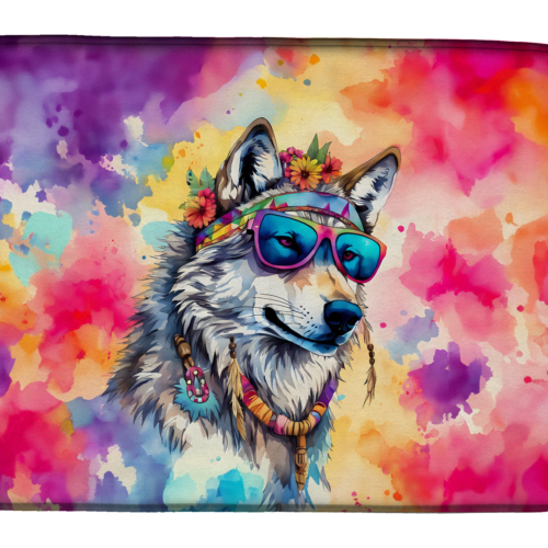 Dish Drying Mat featuring breed specific Wolf artwork. Say goodbye to messy countertops and soggy dish towels with our innovative dish drying mat. Our high-quality dish drying pad is designed to keep your countertops dry while offering a stylish and efficient solution. Whether you’re air drying dishes, glasses, stemware, silverware, pots, pans, bottles, or even fruits and vegetables, our dish mat is the perfect choice. The 14 inches x 22 inches size fits most counters and dish drying racks, and the non-slip design ensures stability. Made with water-absorbent polyester and a polyurethane foam insert, our dish drying mat is not only functional but also durable. It’s machine washable and printed in the USA for long-lasting use. The beautiful artwork adds flair to your kitchen decor, making it a perfect housewarming gift or present for any occasion. Upgrade your kitchen experience with our absorbent and versatile dish drying mat.
