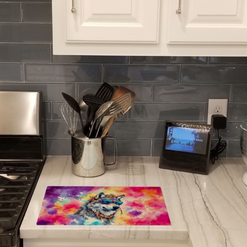 Glass Cutting Board featuring breed specific Wolf artwork. Introduce your kitchen to the vibrant, large Decorative Glass Cutting Board from Caroline’s Treasures. Crafted from resilient tempered glass, this board is not only a utilitarian necessity but also a colorful art piece. With its generous dimensions of 15 inches in height and 12 inches in length, it offers ample space for all your cutting needs. Every piece showcases captivating artwork from distinguished artists, bringing an aesthetic edge to your kitchen. Beyond its attractive design, this cutting board ensures your countertop stays pristine and unscathed, owing to its heat-resistant properties. Engineered with user convenience in mind, it features non-skid feet for stability, and rounded corners for additional safety. Its robust construction renders it virtually unbreakable, guaranteeing longevity. The board comes with protective feet bumpers, maintaining its position during use. This product is recommended to be hand washed only. Proudly printed and assembled in the United States, this cutting board exemplifies superior craftsmanship. With Caroline’s Treasures’ Decorative Glass Cutting Board, you’re investing in a blend of functionality and artistic flair.