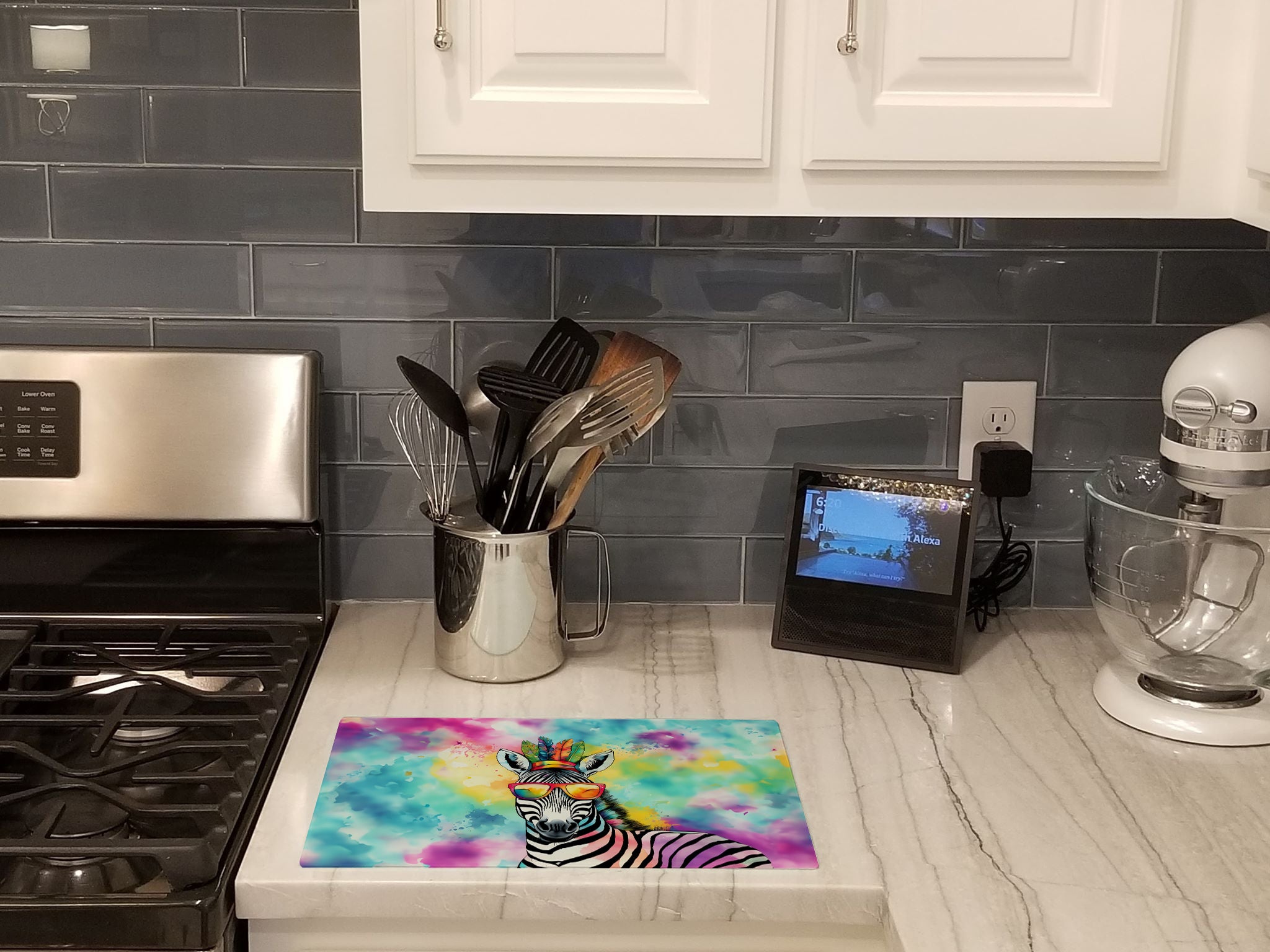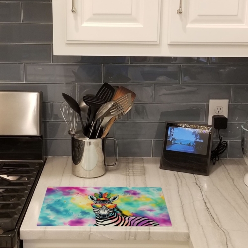Glass Cutting Board featuring breed specific Zebra artwork. Introduce your kitchen to the vibrant, large Decorative Glass Cutting Board from Caroline’s Treasures. Crafted from resilient tempered glass, this board is not only a utilitarian necessity but also a colorful art piece. With its generous dimensions of 15 inches in height and 12 inches in length, it offers ample space for all your cutting needs. Every piece showcases captivating artwork from distinguished artists, bringing an aesthetic edge to your kitchen. Beyond its attractive design, this cutting board ensures your countertop stays pristine and unscathed, owing to its heat-resistant properties. Engineered with user convenience in mind, it features non-skid feet for stability, and rounded corners for additional safety. Its robust construction renders it virtually unbreakable, guaranteeing longevity. The board comes with protective feet bumpers, maintaining its position during use. This product is recommended to be hand washed only. Proudly printed and assembled in the United States, this cutting board exemplifies superior craftsmanship. With Caroline’s Treasures’ Decorative Glass Cutting Board, you’re investing in a blend of functionality and artistic flair.