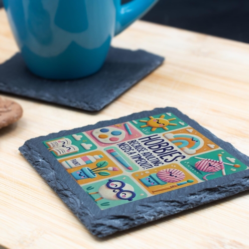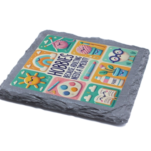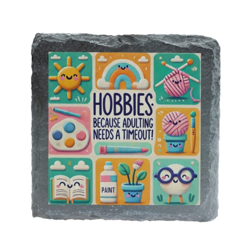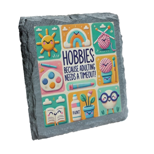 Take a break from adulting with this Hobbies Slate Coaster, featuring the witty phrase “Because Adulting Needs a Timeout” surrounded by vibrant illustrations of knitting, painting, gardening, and more. This coaster celebrates the joy of hobbies and is perfect for adding a touch of personality to your workspace or craft area. Made from premium natural slate, it combines durability with style, while the non-slip backing ensures your surfaces stay safe. Whether you’re sipping coffee during a crafting session or enjoying tea while reading, this coaster is the perfect companion. An ideal gift for anyone who cherishes their hobbies and knows the importance of a timeout! Hobby-Inspired Design: Features the playful slogan “Because Adulting Needs a Timeout” with charming illustrations of hobbies like knitting, painting, and gardening. Premium Slate Material: Crafted from natural slate for a durable and stylish touch. Non-Slip Backing: Protects surfaces and prevents slipping for worry-free use. Versatile Use: Perfect for desks, coffee tables, or hobby corners to keep drinks secure. Thoughtful Gift: A great gift for crafters, artists, and hobby enthusiasts who deserve a break from adulting!
