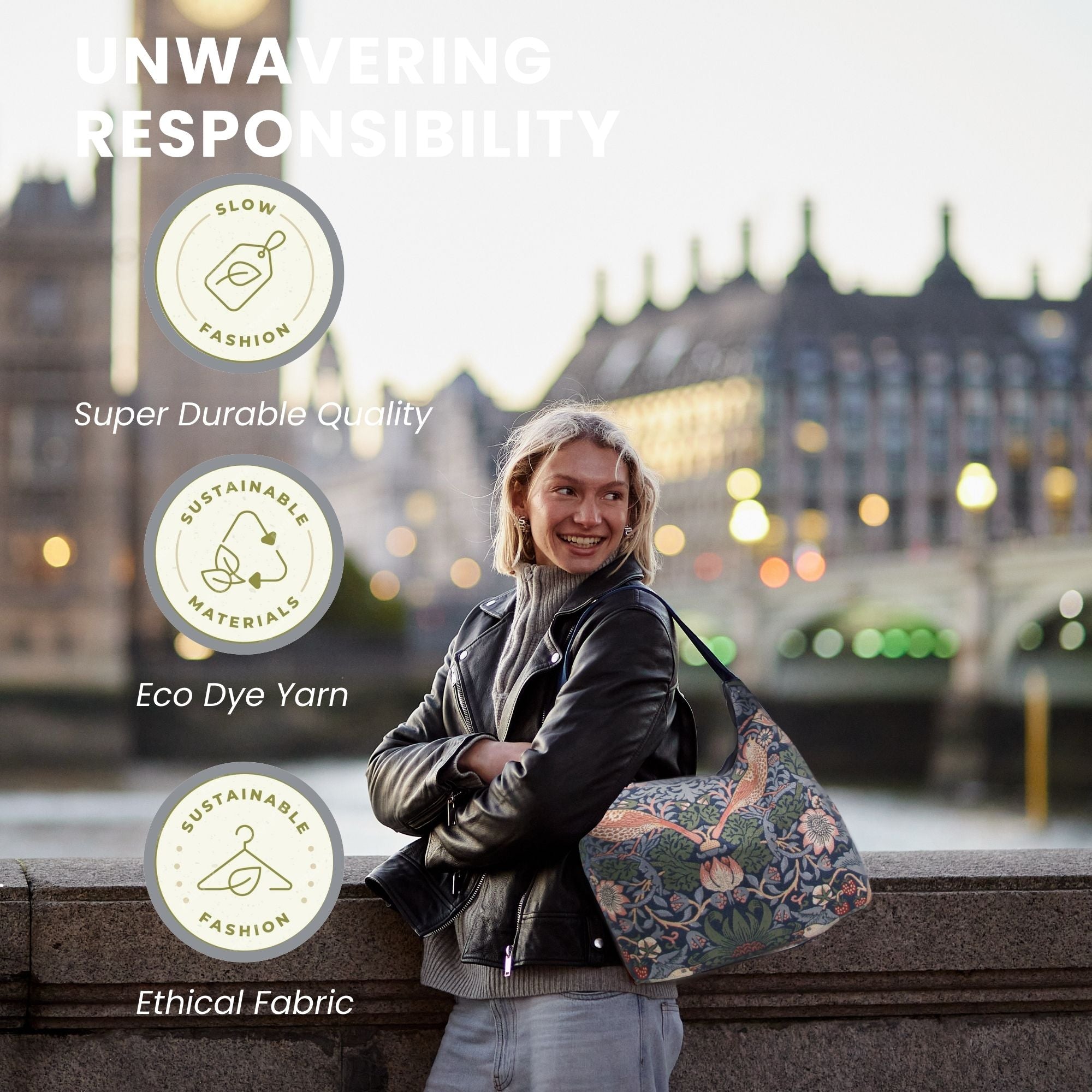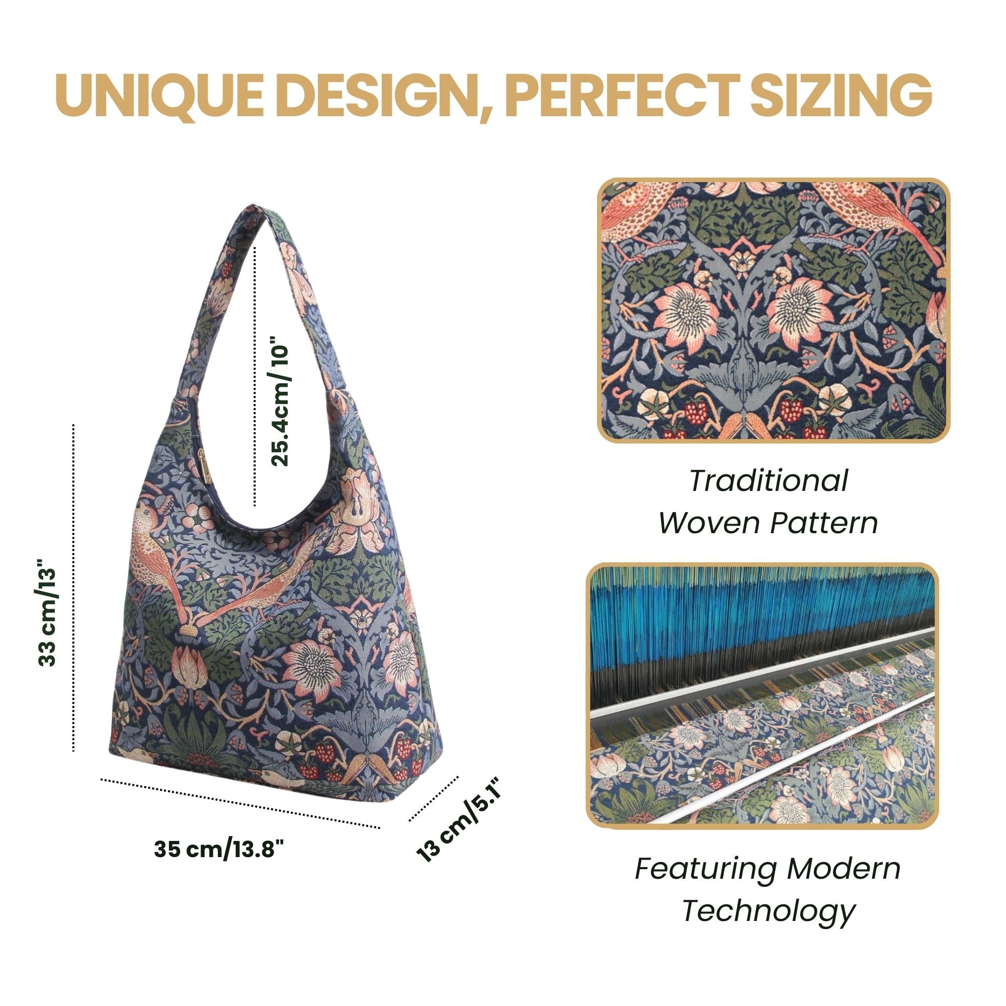 HOBO-STBL | WILLIAM MORRIS STRAWBERRY THIEF BLUE HOBO HANDBAG SHOULDER BAG