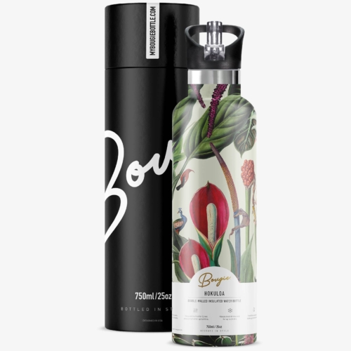 Introducing “Hokuloa,” the Hawaiian anthurium-inspired water bottle that brings tropical vibes and functionality together! With its convenient Flip ‘n’ Sip Straw Lid, staying hydrated has never been easier. Plus, it’s perfect for keeping your favorite drinks icy cold for up to 24 hours or delightfully warm for 12 hours. Whether you’re looking for a stunning gift or planning a fun outing with friends, this stylish bottle will surely make a statement. Time to flip and sip in style! INCLUDES- Leak-proof, screw-on, easy one-hand Flip ’n’ Sip Lid- 2 (two) bottle-length, reusable BPA-free Straws- Durable, strong yet soft bristled Straw Cleaner PACKAGING OPTION- Gift-ready packaged in a beautiful gift tube (OR)- Recyclable white box FEATURES- 25oz. food-grade, 18/8 stainless steel bottle- Slim shaped to fit most cup holders for safer driving- Wide mouth makes it easy to fill and clean- Scratch-resistant 360° covered graphic wrap- Easy to carry handle- Double-walled insulated to keep drinks cold for up to 24hrs, hot drinks warm for 12hrs, and piping hot for up to 6hrs- Free from condensation build-up on bottle exterior- Eco-friendly & BPA-free and no aftertaste- FDA approved
