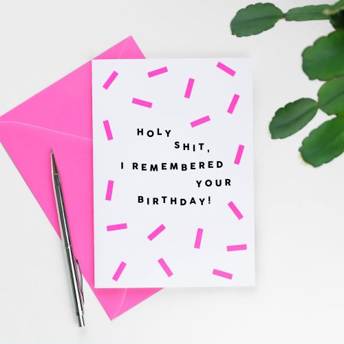 Hand-pressed with bright neon pink foil. Part of our Neonfetti range – all hand-pressed by us in our Rutland studio. Printed on 120mm x 170mm 350gsm uncoated card for a quality finish and feel. Comes with a matching neon pink envelope. Card and envelope will be sent in a sturdy card-backed envelope. We’ve taken the #nakedcards pledge to cut out plastic card wrappers. You can find out more by searching the hashtag on social media.
