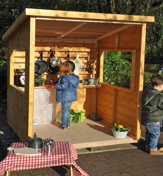 Enhance your outdoor area with our Home Corner Outdoor Shelter. This multifunctional hut includes a counter and trellis back, providing endless opportunities for imaginative play. Whether used as a mud kitchen, writing center, or detective agency, let your child’s creativity and skills flourish. Add separate accessories to customize and watch them thrive. Measurements: H160cm x W160cm x D154cm.