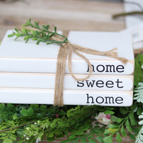 “White-Washed Home Sweet Home Decorative Faux Books Decor
