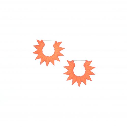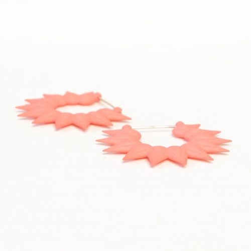 These earrings are made out of 3d printed nylon with sterling silver hooks. Nylon is a very light and resilient material making this floral earrings very and comfortable for anyone to wear. The hooks are handmade in sterling silver. The radiant colors are achieved by hand dipping the pieces in pigments, which are then sealed and waterproofed, to a lovely smooth and <strong.