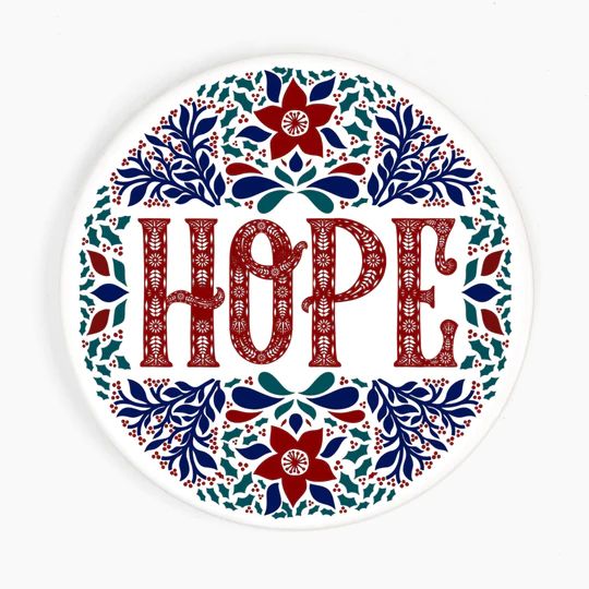 Chunky ceramic coaster with a folksy HOPE design. Makes a lovely Christmas gift or stocking filler.