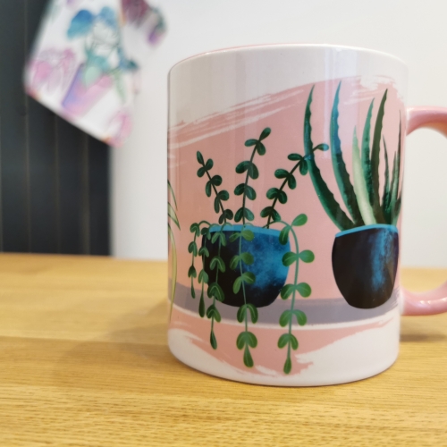 Make your morning tea, coffee of chai with this beautifully designed house plant mug featuring an aloe Vera and spider plant.
