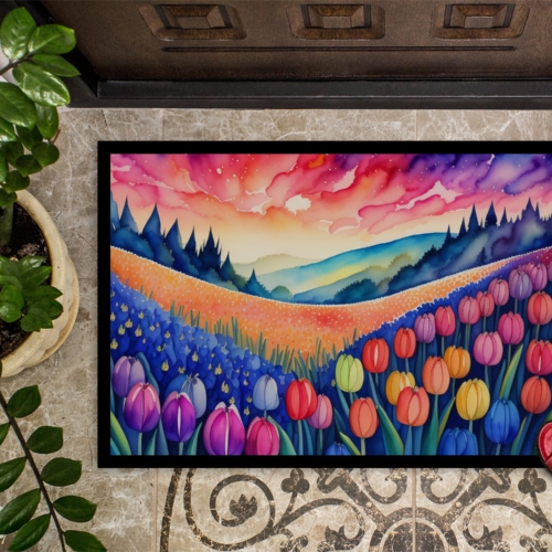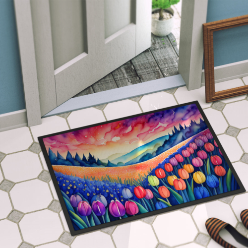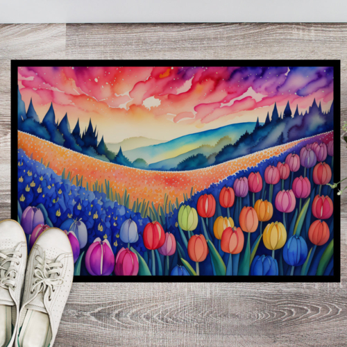 Welcome your guests in style with our Artwork Door Mat, designed to withstand almost any weather condition. This mat, measuring approximately 18 by 27 inches, is held together by durable black binding tape. Its top layer, composed of polyester felt, is dyed with the eye-catching image you see on the mat. A few layers below provide the mat with stability, while its rubber bottom is stamped to help prevent slipping and ensures safety. Our mat works wonderfully as both an indoor or outdoor door mat. For cleaning, simply hose it off with water or use a power washer – no need for any cleaner that produces suds. Avoid scrubbing with a brush, instead, opt for the vacuum on floor setting. Designed manufactured and printed in the USA, this mat is a perfect addition to your porch, outdoor kitchen, entryway, or any indoor space. Its unique design makes it a charming decorative rug that greets your guests and adds a stylish touch to your home decor.