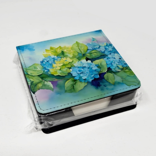 PU Leather Note Paper Holder featuring breed specific Hydrangeas artwork. Elevate your workspace with this PU Leather Note Paper Holder, crafted to resemble luxurious leather without the use of animal products. Made from durable synthetic PU leather, it offers both a premium look and eco-friendly appeal. This note holder, compactly sized at 4.25 x 4.25 x 1.25 inches, includes about 160 sheets of 3.75 x 3.75-inch note paper—ideal for quick notes and reminders. An exclusive artist-designed cover makes each holder uniquely vibrant, adding a splash of color and personality to any desk or office. The discrete design keeps note paper hidden, maintaining a neat and organized workspace. Perfect as a gift or for personal use, this stylish holder is refillable with standard paper, ensuring long-lasting utility. A must-have for anyone seeking a sophisticated, artful touch to their workspace while supporting animal-friendly products. Add style, organization, and creativity to your everyday routine with this elegant note paper holder.