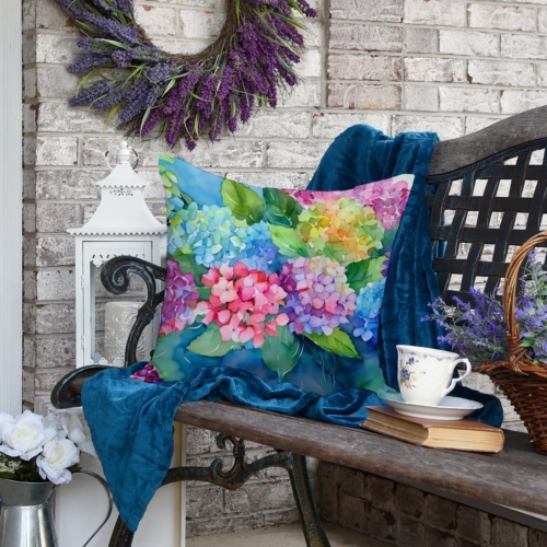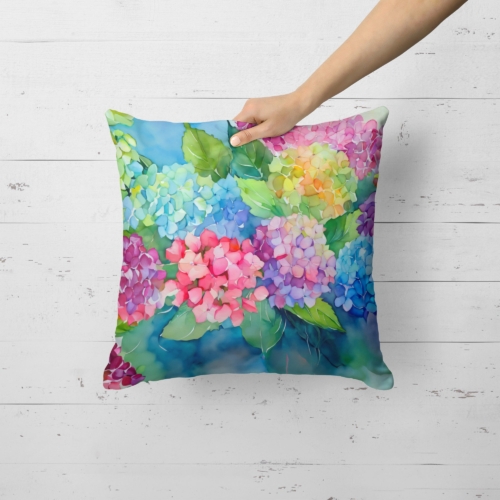 Throw Pillow featuring breed specific Hydrangeas artwork. Revitalize your outdoor or indoor living space with Caroline’s Treasures 18×18 Fabric Decorative Pillow. With a generously sized dimension of approximately 18 inches by 18 inches, this pillow makes a comfortable and aesthetic addition to any seating area. Made from a unique, water-resistant material developed by Caroline’s Treasures, the pillow sham is 100% polyester fabric that’s durable and ready to weather any condition. Its vibrant, full-color artwork will not fade over time as it is dyed with color-fast dyes. Whether you place it on your patio furniture, porch, veranda, or indoor couch, its soft canvas fabric ensures a cozy experience. The pillow is handcrafted in the United States, featuring a sham created from three pieces of fabric and a polyester insert for enduring shape and overstuffed comfort. Despite being robustly built to endure the outdoors, it is as soft and snug as your favorite indoor cushions. Please note, as all our pillows are handmade, sizes may vary slightly, adding to the charm of this unique decorative item.