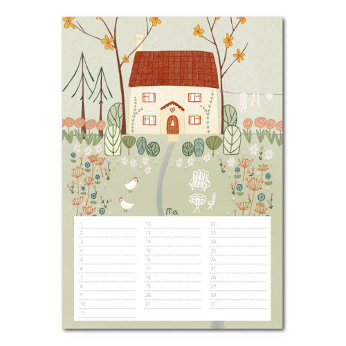 The calendar has a handy hook so you can easily hang it anywhere. The size is A4 (21 x 29.7 cm) and has 14 pages. The calendar is professionally printed on 250 gram biotop paper, which is easy to write on. The colors on the screen may differ from the actual colors.