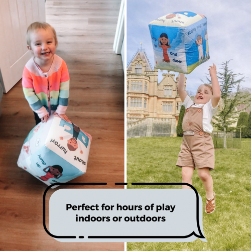 Inflatable and easy to carry, this rather large but super light dice is great to exercise with a laugh! Sing along while the little ones roll themselves a new activity to jog both their minds and their muscles. Perfect for a little bit of baby-gym time! And say hello to our special fabula family of dad, mum, brother, sister, baby, grandpa, grandma, best friend, dog and cat to learn more about inclusivity across cultures and capabilities!