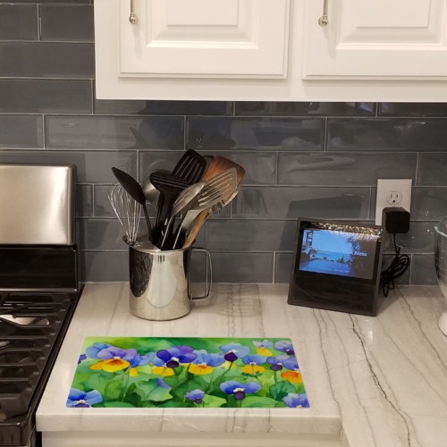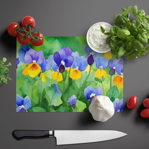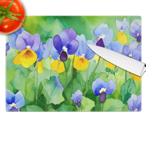 Glass Cutting Board featuring breed specific Illinois Violet artwork. Introduce your kitchen to the vibrant, large Decorative Glass Cutting Board from Caroline’s Treasures. Crafted from resilient tempered glass, this board is not only a utilitarian necessity but also a colorful art piece. With its generous dimensions of 15 inches in height and 12 inches in length, it offers ample space for all your cutting needs. Every piece showcases captivating artwork from distinguished artists, bringing an aesthetic edge to your kitchen. Beyond its attractive design, this cutting board ensures your countertop stays pristine and unscathed, owing to its heat-resistant properties. Engineered with user convenience in mind, it features non-skid feet for stability, and rounded corners for additional safety. Its robust construction renders it virtually unbreakable, guaranteeing longevity. The board comes with protective feet bumpers, maintaining its position during use. This product is recommended to be hand washed only. Proudly printed and assembled in the United States, this cutting board exemplifies superior craftsmanship. With Caroline’s Treasures’ Decorative Glass Cutting Board, you’re investing in a blend of functionality and artistic flair.
