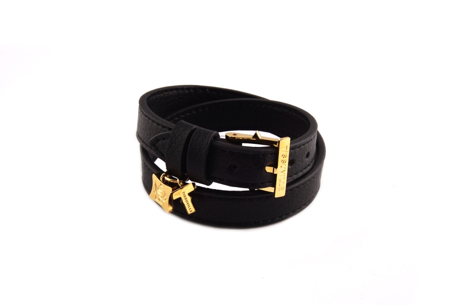 Fasteners and adornments are gold-plated high polish or steel, and are embossed with the Tissuville hallmark.