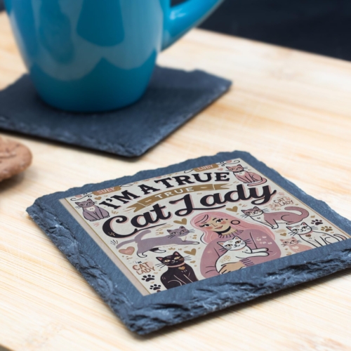 Celebrate your feline obsession with the “I?m a True Cat Lady” Slate Coaster! Designed for cat lovers who embrace their title with pride, this adorable coaster combines functionality with whimsical charm. The playful illustrations of cats, paired with the fun typography, make it a standout piece for any cat enthusiast’s home. Crafted from premium natural slate, this durable and stylish coaster not only protects your surfaces from drink spills and stains but also adds a touch of rustic elegance to your d?cor. Whether you?re sipping coffee, tea, or a refreshing drink, this coaster is the perfect companion for cozy moments at home. Looking for the purr-fect gift? This coaster is an excellent choice for cat moms, cat dads, or anyone who adores their furry friends. Bring a smile to their face while celebrating their love for all things feline! Charming Cat-Themed Design: Features a whimsical “Iâm a True Cat Lady” design with playful illustrations of cats, perfect for cat enthusiasts and proud pet parents. High-Quality Slate Material: Made from natural slate, this coaster is durable, easy to clean, and adds a rustic charm to your home décor. Perfect for Cat Lovers: A thoughtful gift for cat moms, cat dads, or anyone who adores felines â ideal for birthdays, housewarmings, or holidays. Protects Surfaces: Safeguard your furniture from spills and stains while adding a delightful and unique accent to your coffee table or desk. Great Decorative Accent: A functional and stylish addition to your home that celebrates your love for cats in a fun and creative way.