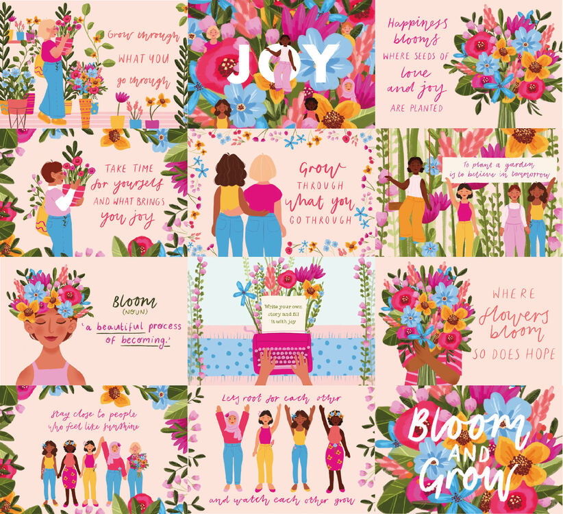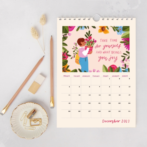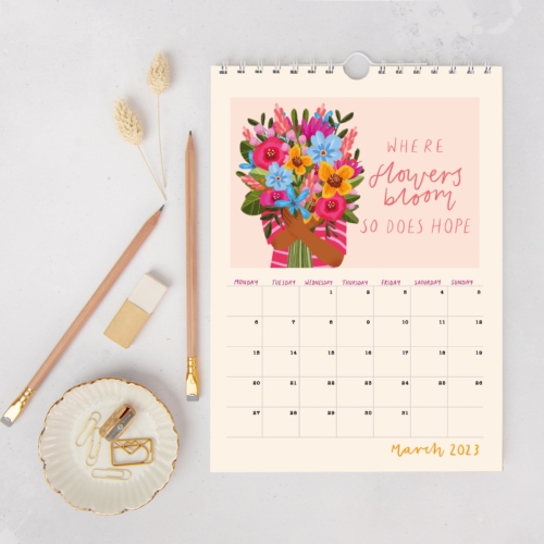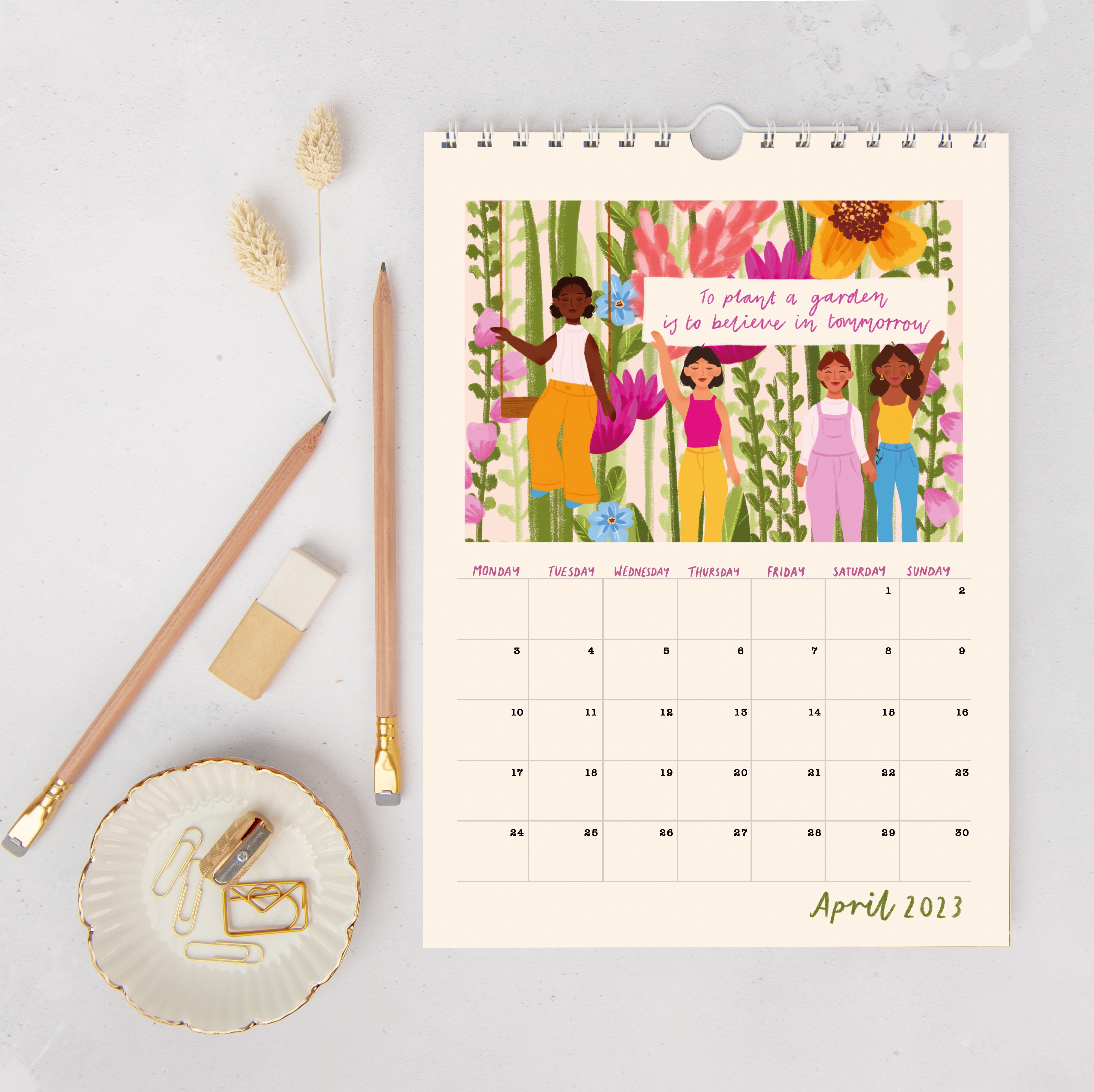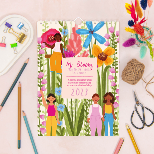 Keep track of important dates and plan out your year with this ‘in bloom’ flower themed calendar. Each page is lovingly illustrated in-house and features a theme of friendship, growth, and self love. This calendar is a celebration of women and is filled with beautiful illustrations of diverse women throughout.